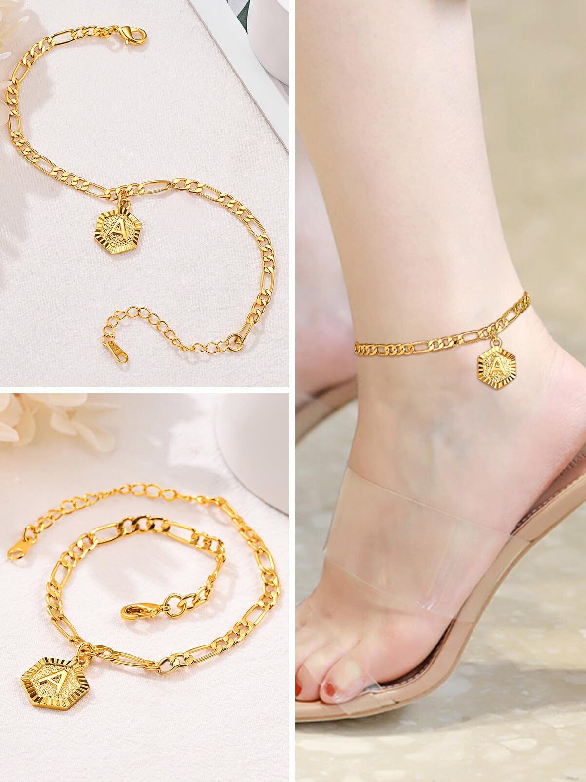 FOCALOOK 18金 イニシャル A アルファベット アンクレット メンズ ゴールド 27cm(5cmアジャスター含む) レディース アクセサリー