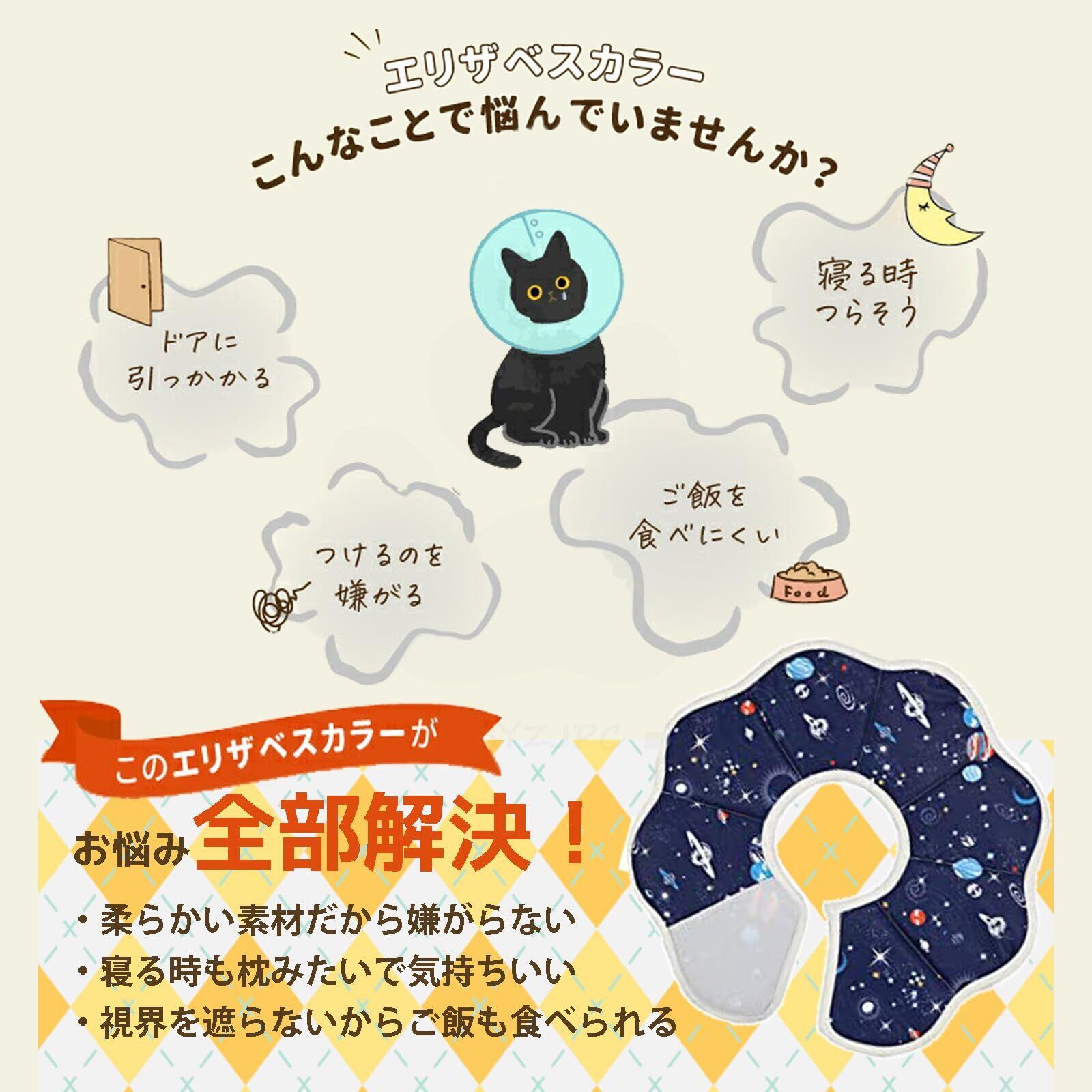 【柔らかい素材】ソフト素材できて、愛猫や愛犬に心地よく装着していただけます。星空柄のエリザベスカラーは可愛くて、目立つアクセサリーになり、ペットの視界を遮らず、傷や噛みつきにも強いです。 装着すると、ペットが家具をひっかいたり、こすったり、傷つけたりするのを防ぐことができます。 ペットが安心して食事や睡眠、遊びができるようにするとともに、術後ケアにも十分対応できるよう保護されています。