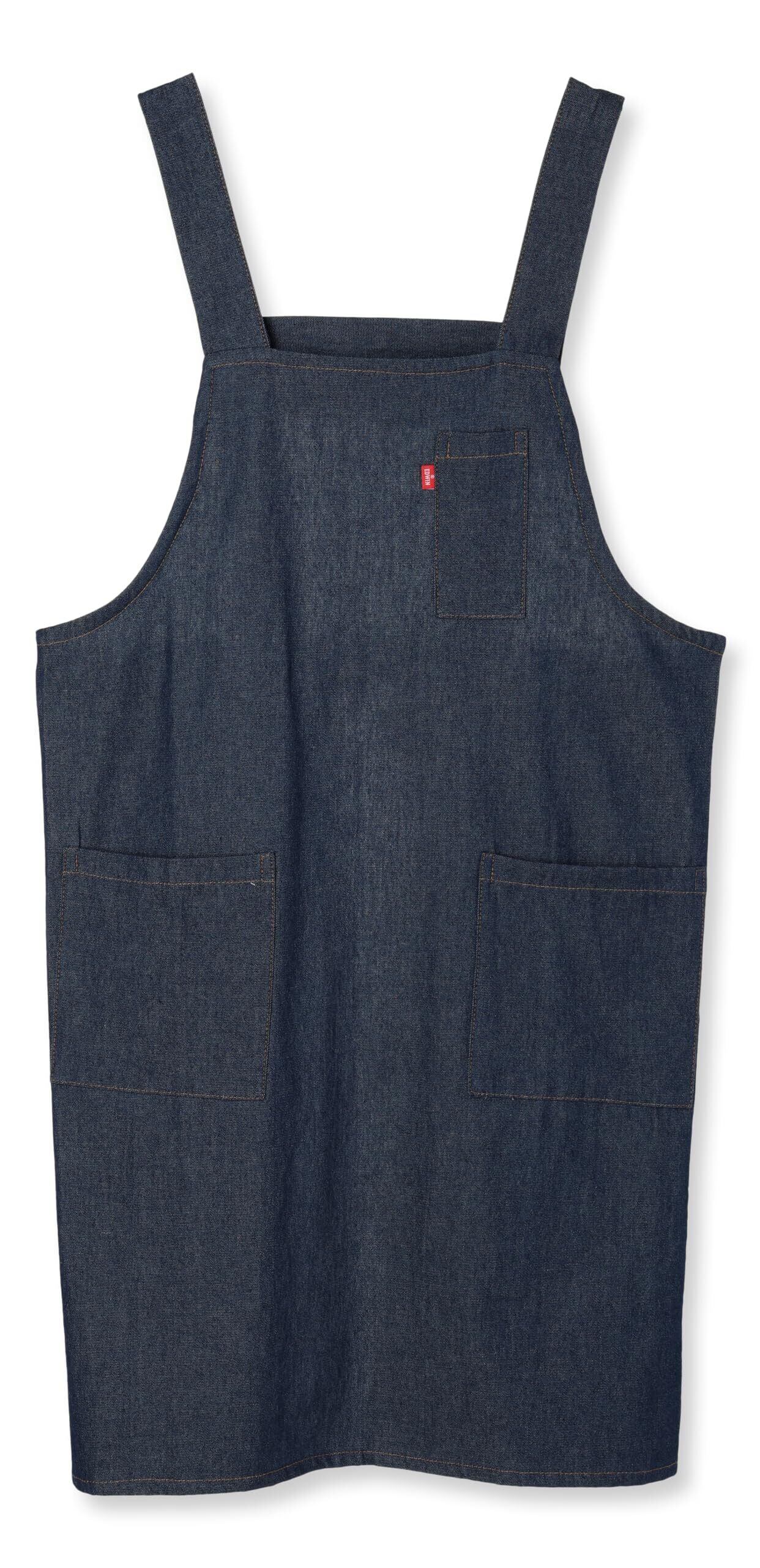 [エドウィン] エプロン 二段階調節可能な後ろ腰ボタン デニム H型 両サイドポケットペン差し付 ネイビー M