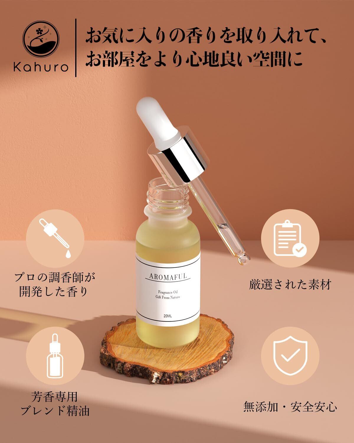 【多用途】仕事や勉強中のデスク、玄関、ベッドサイドなどの狭いところでは、アロマストーンなどに垂らして、リビングなどの広いお部屋ではエッセンシャルオイルを霧状にして拡散させるアロマディフューザーを使って香りを楽しみましょう。