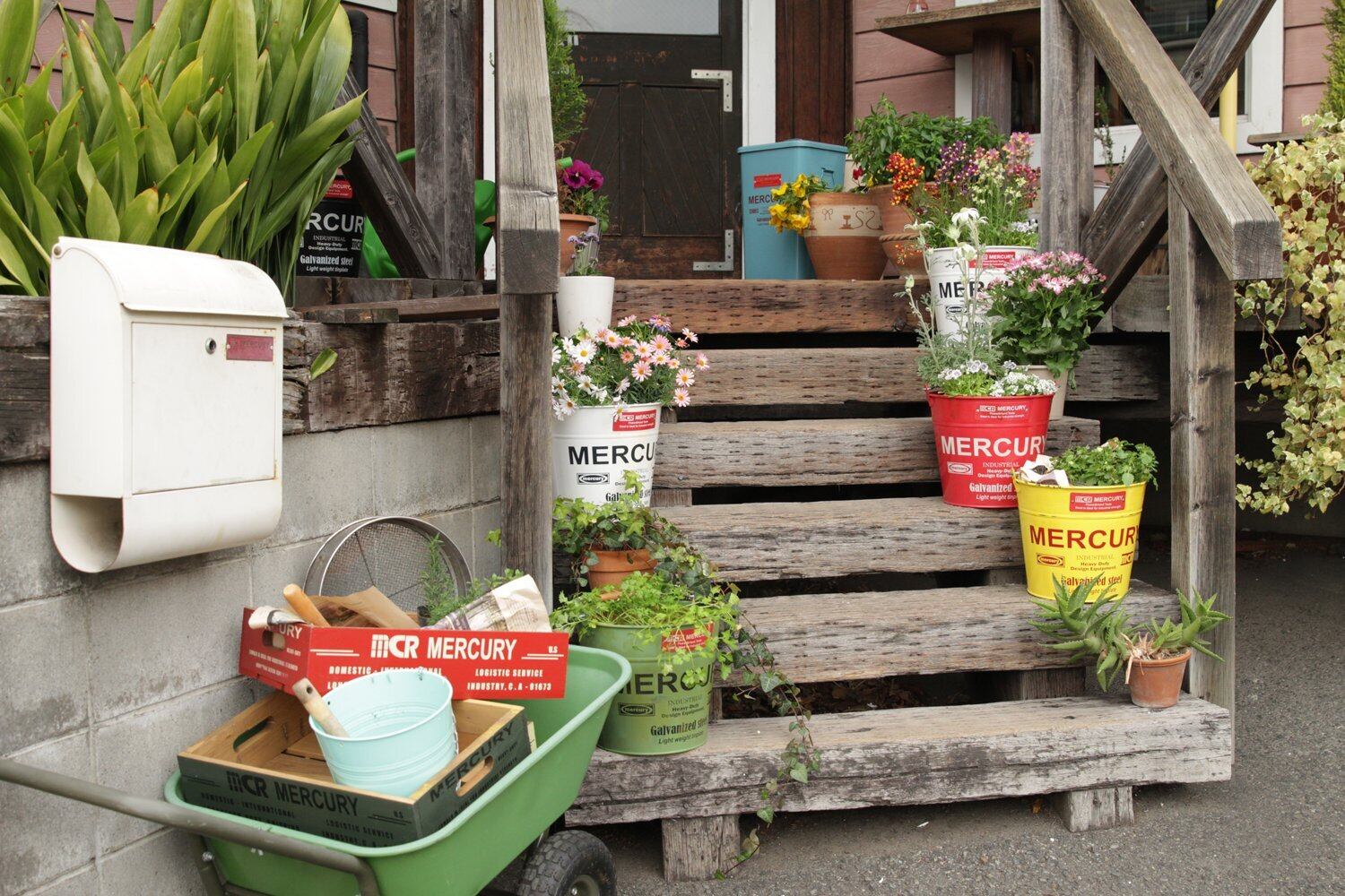 カラフルな色使いとブリキの質感がとってもアメリカンなマーキュリーのブリキ製バケツ