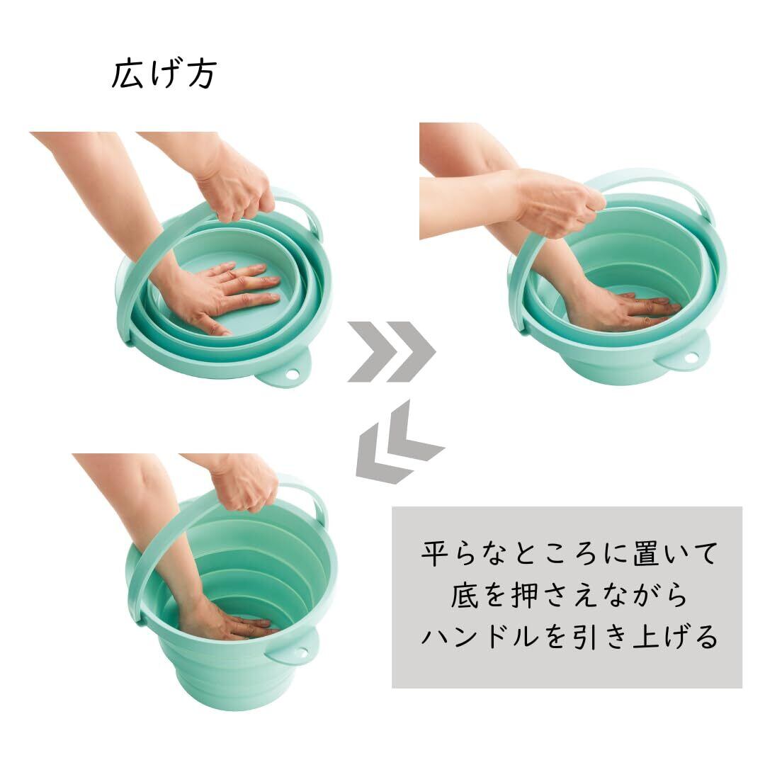 イセトウ(Isetou) 折りたたみバケツ ソフトバケツ8型 ミントグリーン 8L 幅32.8×奥行30.0×高さ4.9~22.2cm 日本製 耐熱100℃ 防災 折りたたみ バケツ 洗濯機 吊り下げ 丸形 コンパクト 清掃用品 洗車 I-614