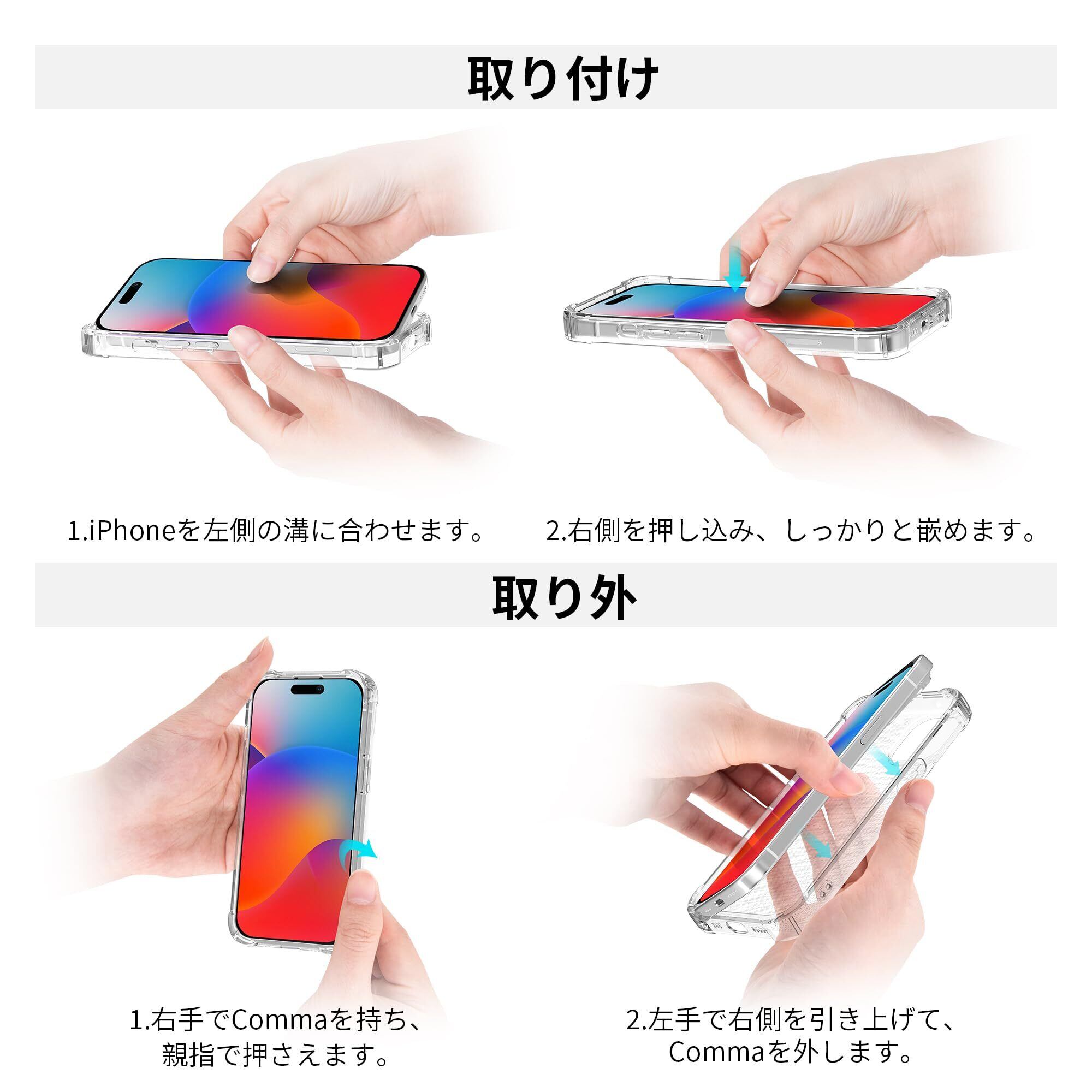 [滑り止めグリップと四隅のエアバッグ設計による落下防止] 透明なiPhone 15保護ケースは、四隅のエアバッグ設計を特徴としており、衝撃を吸収し、落下からスマートフォンを保護する能力を強化しています。TPU素材は滑り止めグリップも提供し、誤って落とす可能性を減らします。この機能は、一日中頻繁にスマートフォンを扱うユーザーにとって特に便利です。これにより、スマートフォンの美しい外観を保つだけでなく、全体的な安全性も向上し、手から滑り落ちる可能性を低くします。