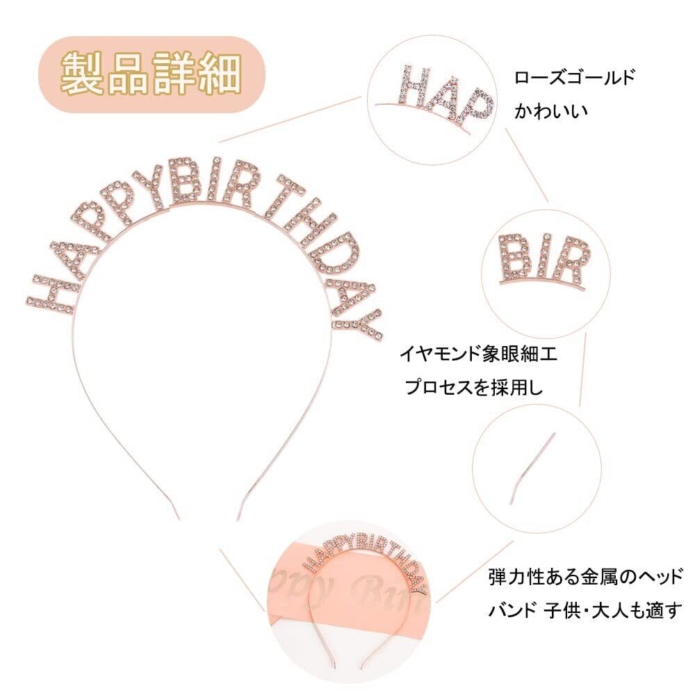 【ユニークなデザイン】HAPPY BIRTHDAY光沢のあるヘッドギアは、どこにいても、誰もが注目する中心になることができます。ラインストーンは、このヘッドバンドを太陽の下で輝かせます。パーティーや写真撮影など、特別な日のアクセントとして最適です。