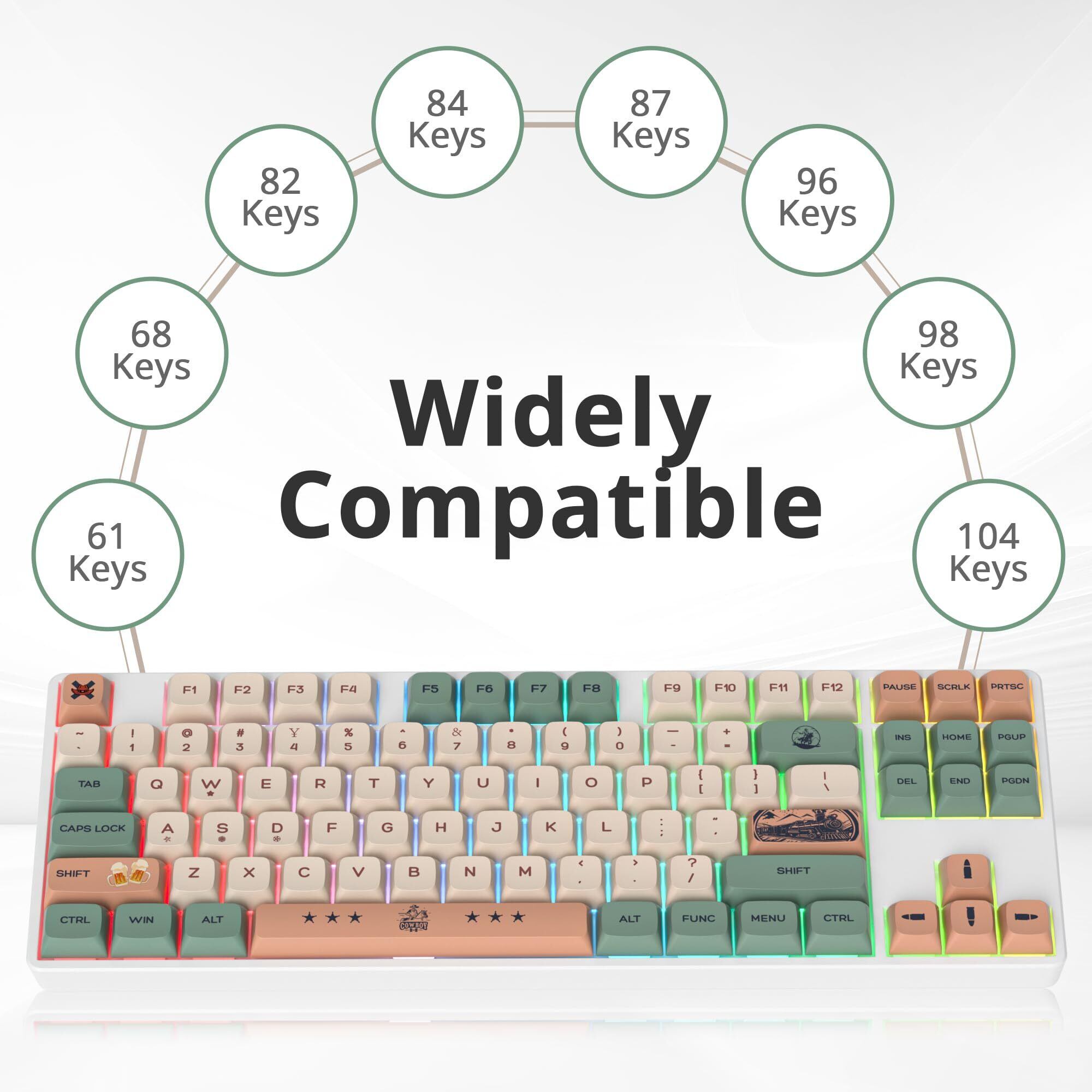 136 キー XDA プロファイル 昇華印刷 PBT キーキャップセット カスタムキーキャップ, かわいいキーキャップ USレイアウト 60% 65% 100% MXスイッチ メカニカルキーボード対応(Cowboy)