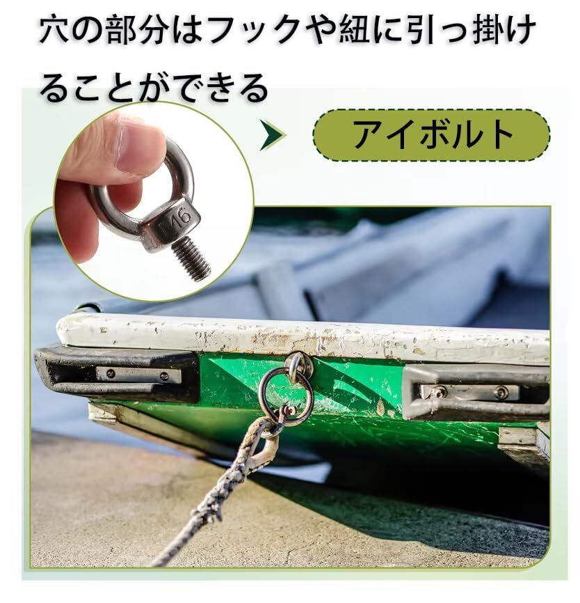 このm6 アイボルトは304ステンレス製で、錆びにくく耐久性に優れています。m6サイズ(ネジ長さ12mm、リング内径17mm)で、10個入りの便利なセットです。約20gの軽量設計で、様々な場所での使用や携帯に最適です。表面には滑り止め加工が施されており、安心してご使用いただけます。主な用途として、機械設備の吊り下げや家具の固定、転倒防止、小物の吊り下げなどがあります。ステンレスボルトの特性を活かし、屋外での使用にも耐える耐熱性・耐食性を備えています。m6 ボルトはロープやワイヤーとの連結にも便利で、テントやターポリンの固定にも活用できます。アイボルト m6は高い硬度と頑丈な構造で、様々な荷重にも対応可能です。交換用工具としても便利なこのアイボルトは、DIYや工業用途まで幅広くお使いいただけます。