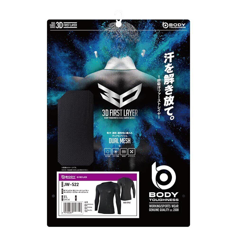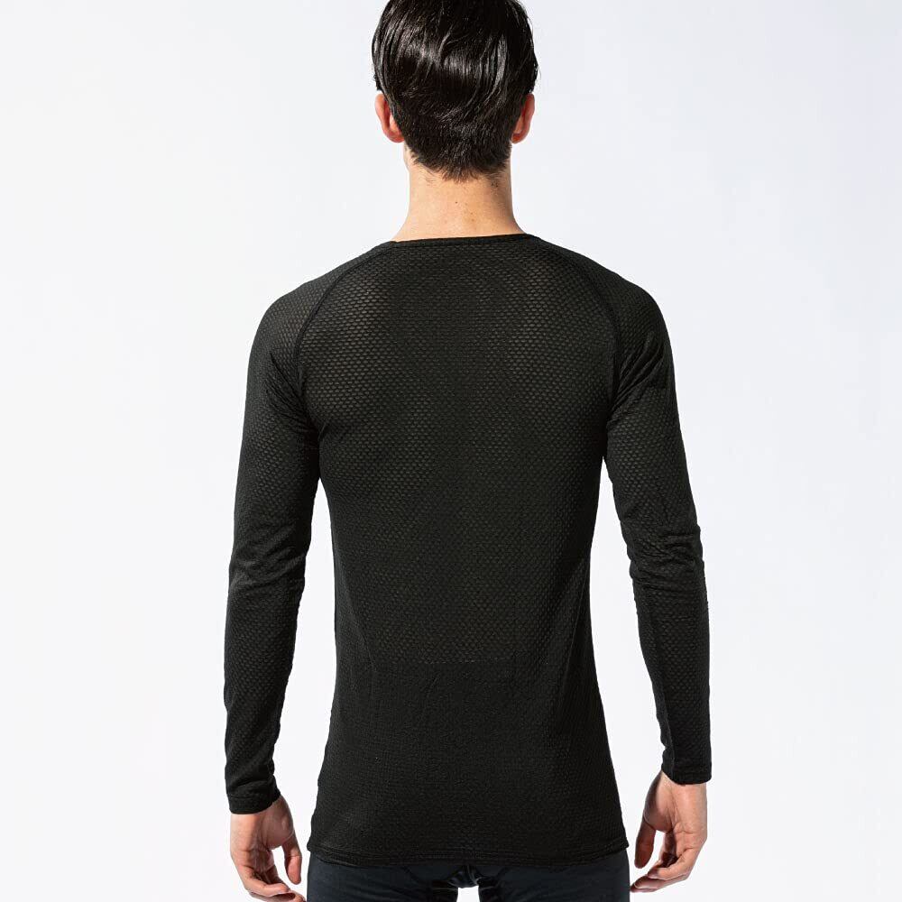 おたふく手袋(OTAFUKU GLOVE) オールシーズンインナー 長袖 丸首 3Dファーストレイヤー [吸汗速乾 消臭 メッシュ コンプレッション メンズ] JW-522 ブラック L