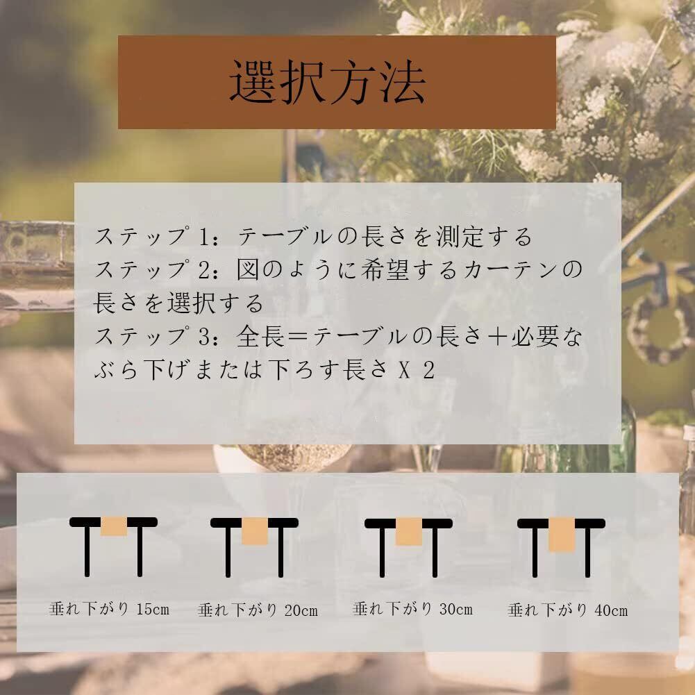 サイズ: テーブルラマットの長さは120cmから275cmの間で、様々なオプションからお選べる。幅は30㎝(タッセルを含む)です。美観のために、テーブルの長さを測り、テーブルフラッグのがテーブルより30~60cm長いことを確認してください。(テーブルの片側に15~30cm垂らす)