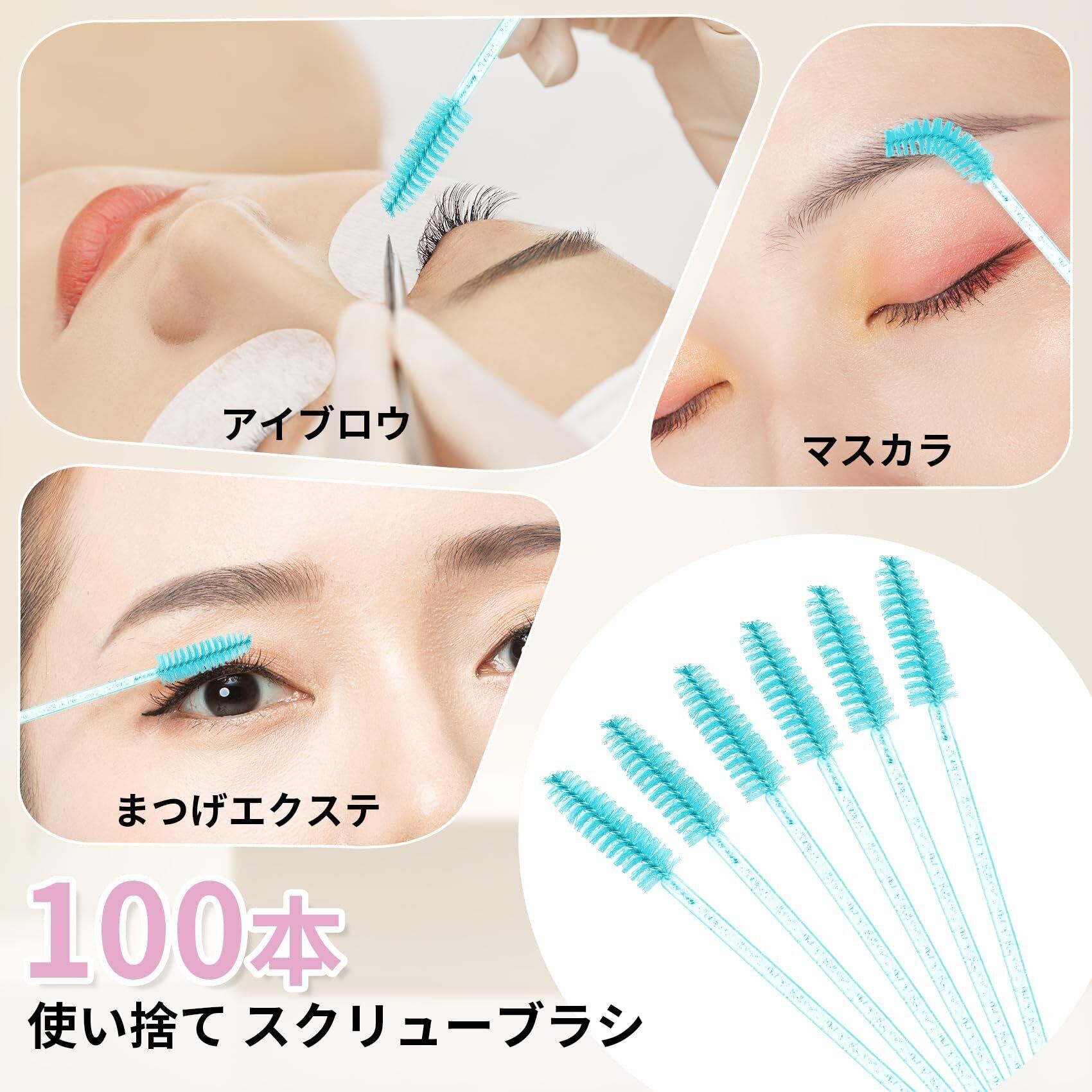 たっぷり使える100本セット:使い捨てまつ毛ブラシなので、一度使用したらそのまま捨てられるため、毎回キレイなまつげブラシを使用可能。日常使いはもちろん、業務用・サロン用としても最適な大容量セットです
