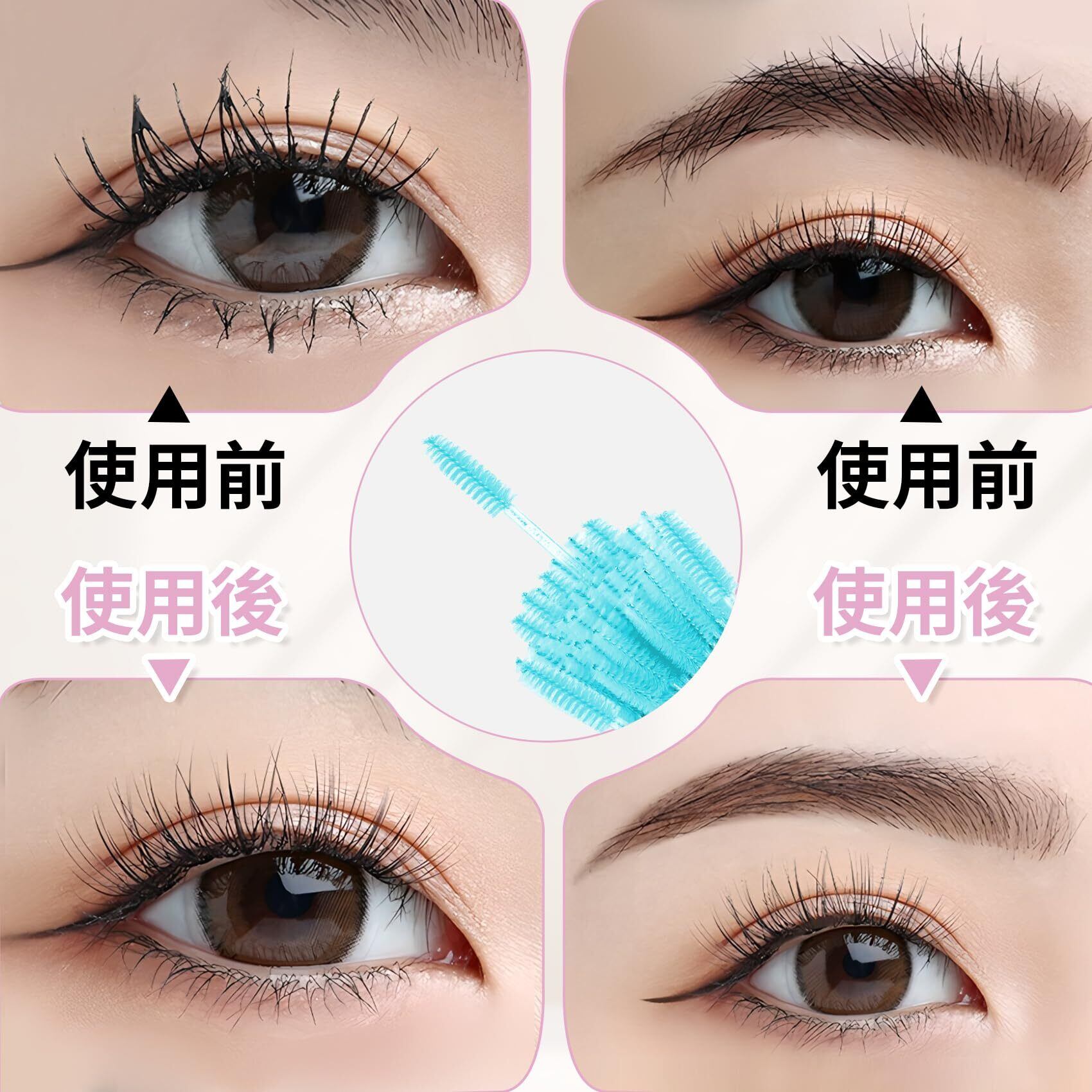 曲がるブラシヘッド:マツ毛ブラシの先端は自由に曲げられる柔軟構造。まつげや眉毛に合わせて角度を調整できるため、より正確で均一な仕上がりが可能です