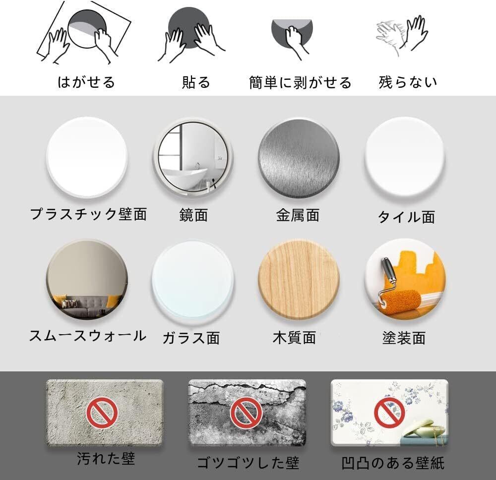 【簡単なピール&スティック】:自己粘着性により、ちょうどの壁の滑らかな、平らな、乾燥した、ほこりのない領域にツールなしでそれを貼り付けます。壁面やガラス、タイル、金属、木などの表面に貼りつけることができます。織り物調の壁紙、凸凹してる壁面、塵を落としやすい表面に適用していません。