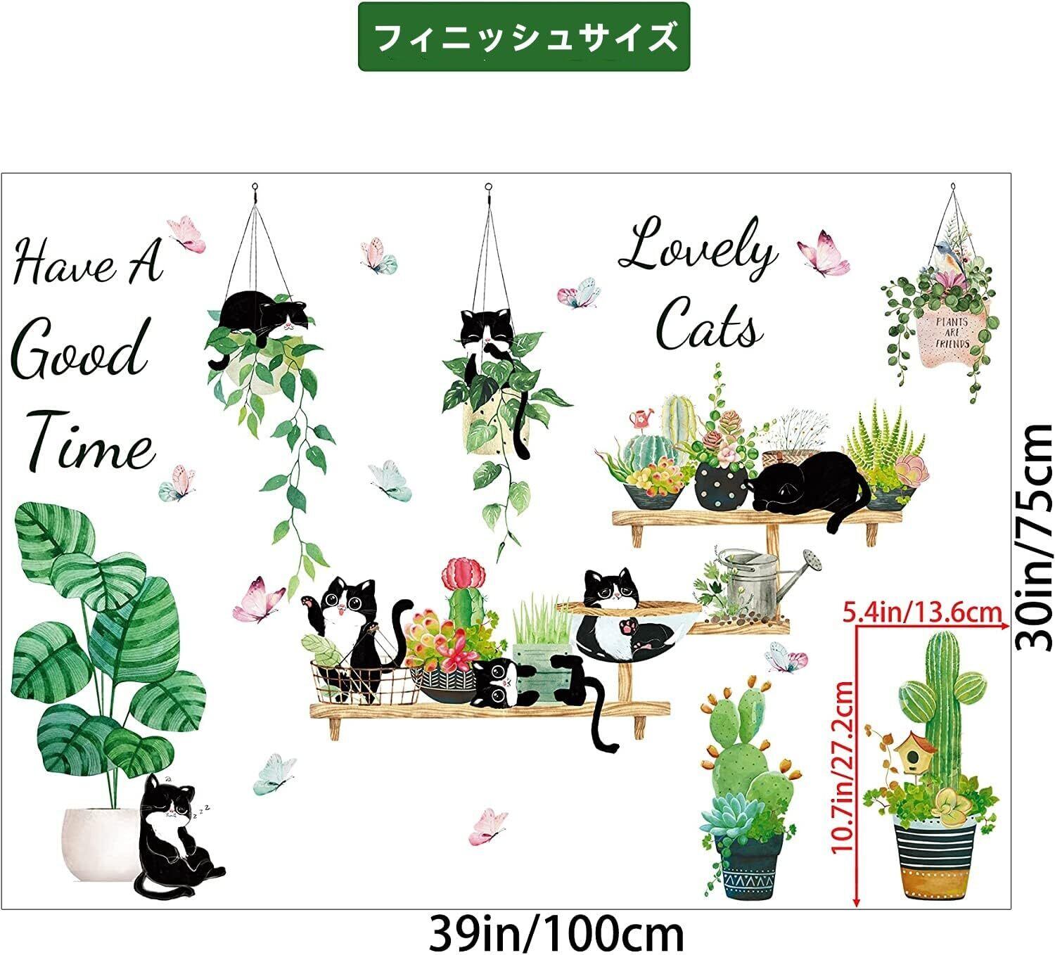 ウォールステッカー 緑 葉 猫 おしゃれ 観葉植物 壁紙シール ウォールシール 蝶 春 壁 ステッカー 部屋飾り 防水 可愛い ウォールデコ 剥がせる PVC素材 インテリア DIY 北欧風 トイレ 子供部屋 階段 寝室 リビングルーム 壁飾り 30x90cm 2枚セット