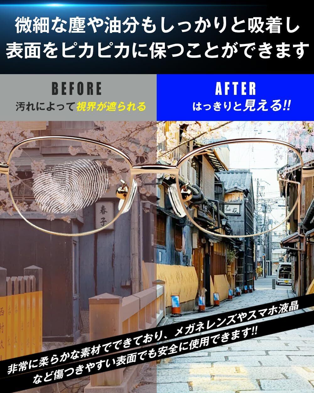 - 2. 柔らかさと安全性非常に柔らかな素材でできており、メガネのレンズやスマホの液晶画面など、デリケートな表面でも傷をつけにくいのが特長。毎日の使用に最適な、安心・安全な仕様です。
