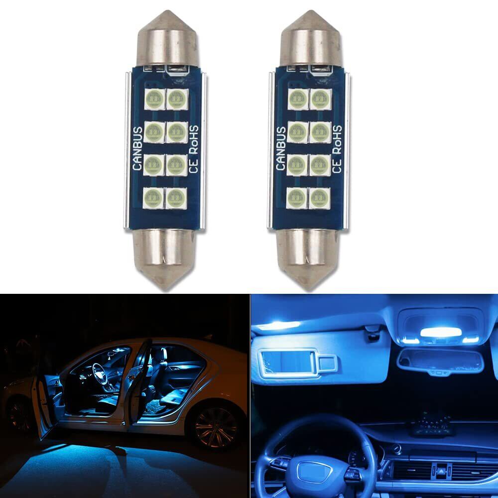 T10*42MM LED バルブ アイスブルー 両口金 C5W LED SMD3030チップ CANBUSキャンセラー内蔵 簡単取付 ルームランプ ナンバー灯 マップランプ カーテシランプ 2個セット