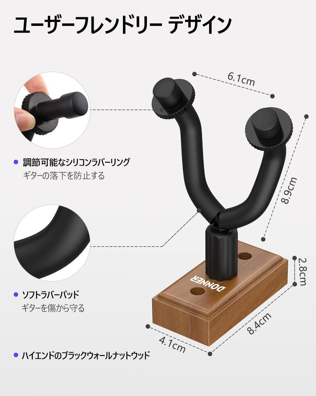 【ブラックウォールナット材】Donnerのギター壁掛けハンガーはブラックウォールナット材でできており、他の普通的な壁掛けよりエレガントです 【親切なデザイン】頑丈なステンレススチール、柔らかいゴム製スリーブ、取り外し可能なゴム製リングにより、ギターをよりよく保護できます