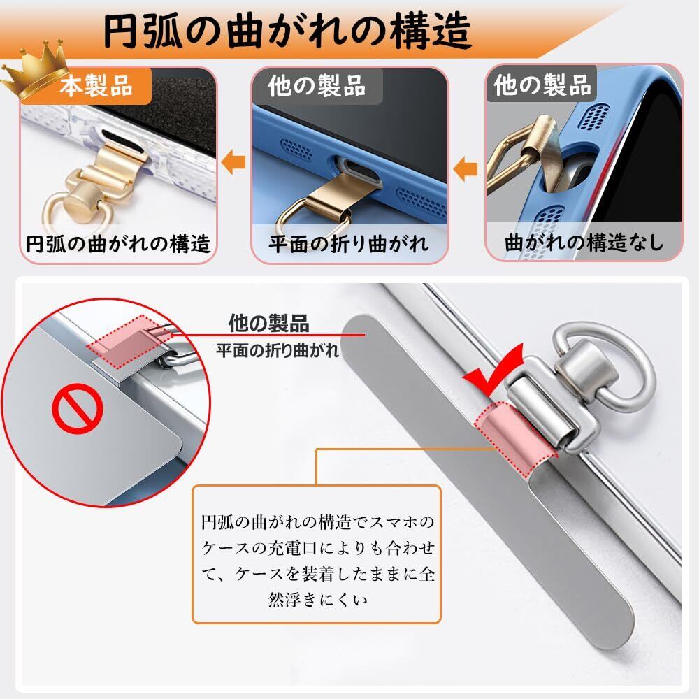 【浮きにくい折り曲がれ設計】:目前市場におけるの大部分のストラップホルダーはケースが浮きやすいの問題点があり、この難点を解決しように、タグパッチが金属リングと本体の間での連結金属部分は折り曲がれて段差になることを構造して、ケースを装着したままに全然浮きにくい、さらに本ストラップホルダーを挟んだままに、充電ケーブルもワイヤレス充電も支障しないます。