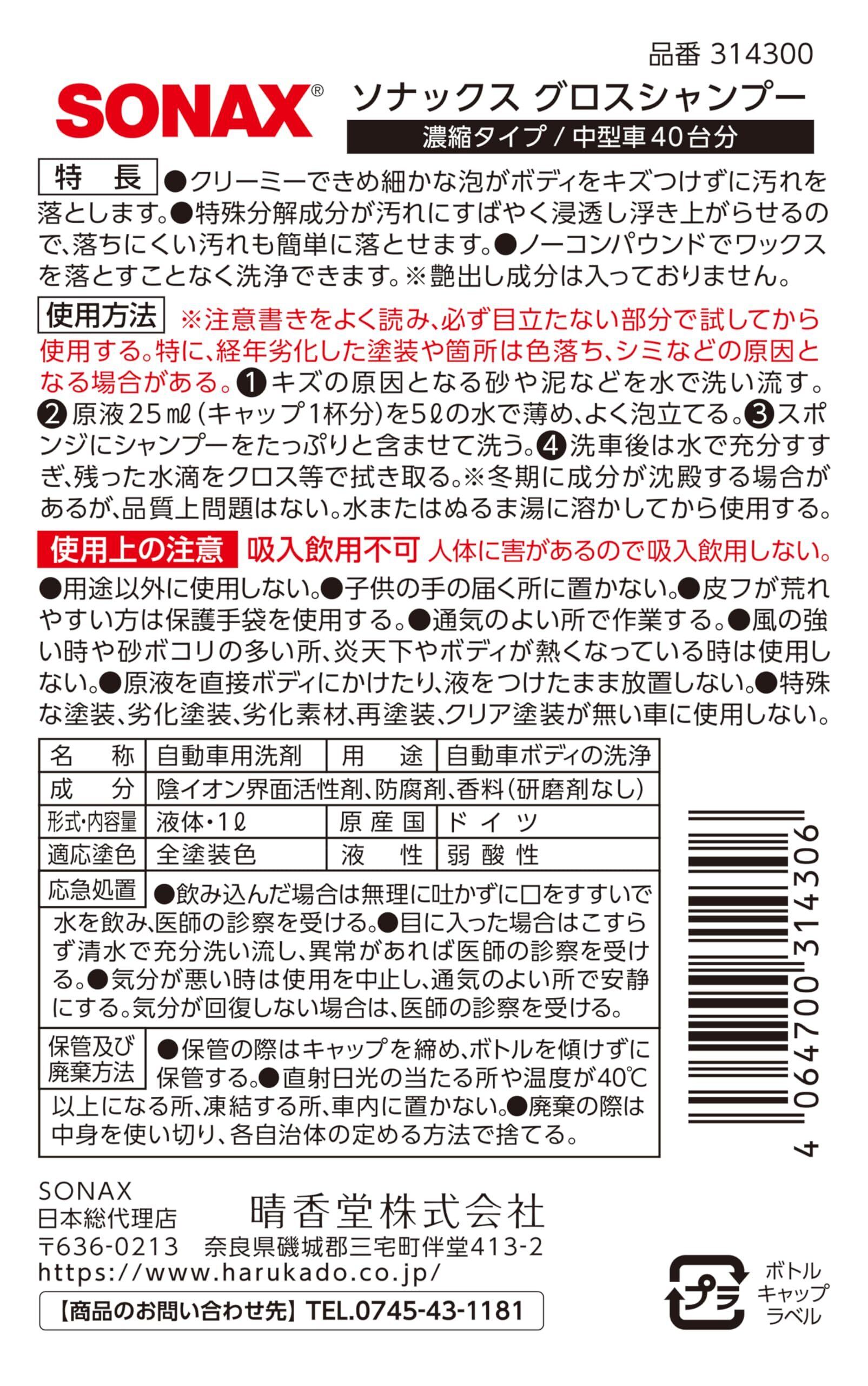 ソナックス(Sonax) カーシャンプー グロスシャンプー 314300