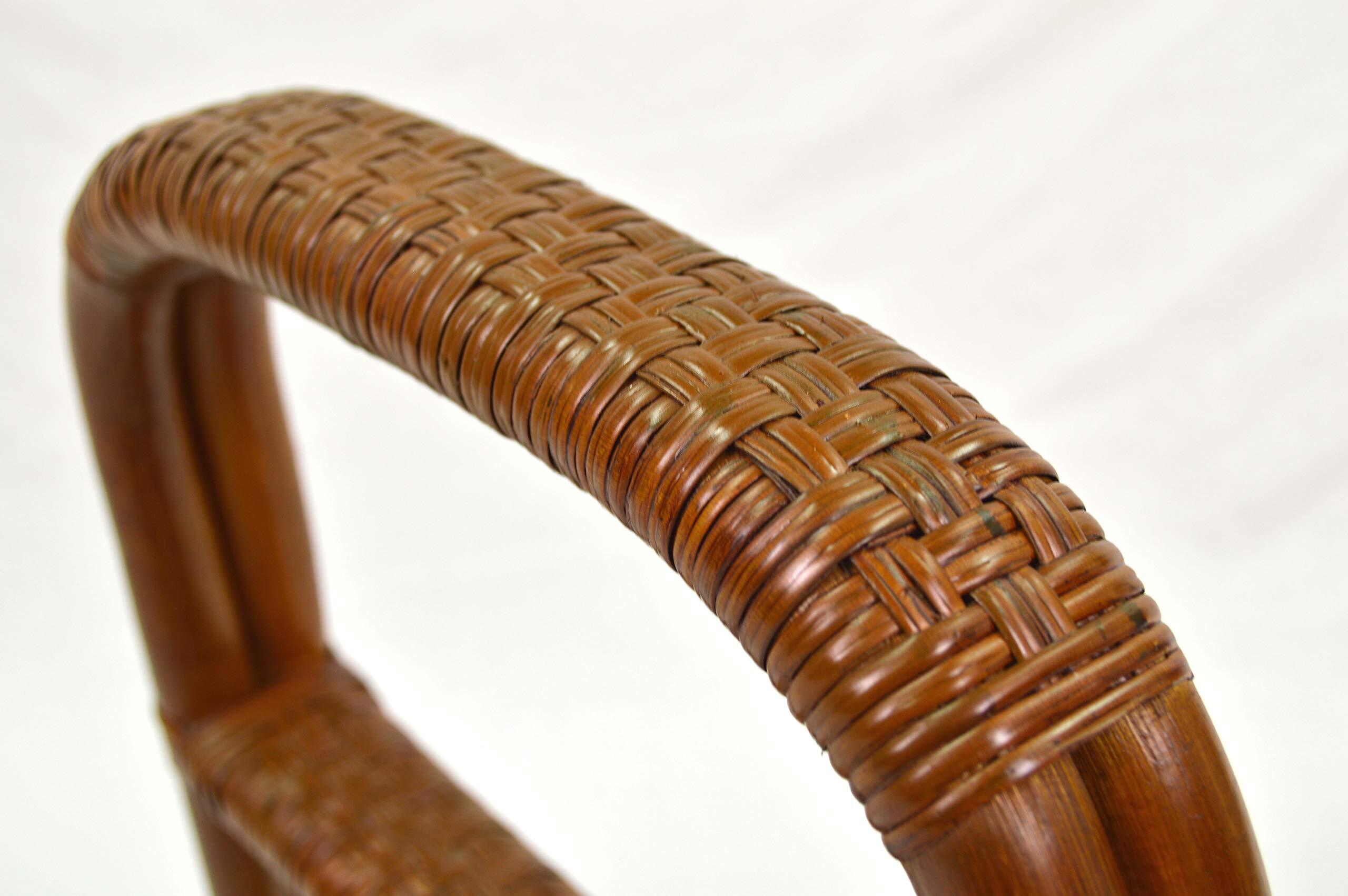 大竹産業 立ち上がり補助器具 玄関台 ブラウン 36x38x60cm 転倒防止 介護手摺 置き型 3段 籐 ラタン OT-204-1
