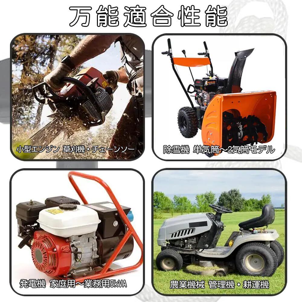4. 【万能適合性能】 機器タイプ代表機種例 小型エンジン 草刈機・チェーンソー 発電機 家庭用~業務用5kVA 除雪機 単気筒~2気筒モデル 農業機械 管理機・耕運機