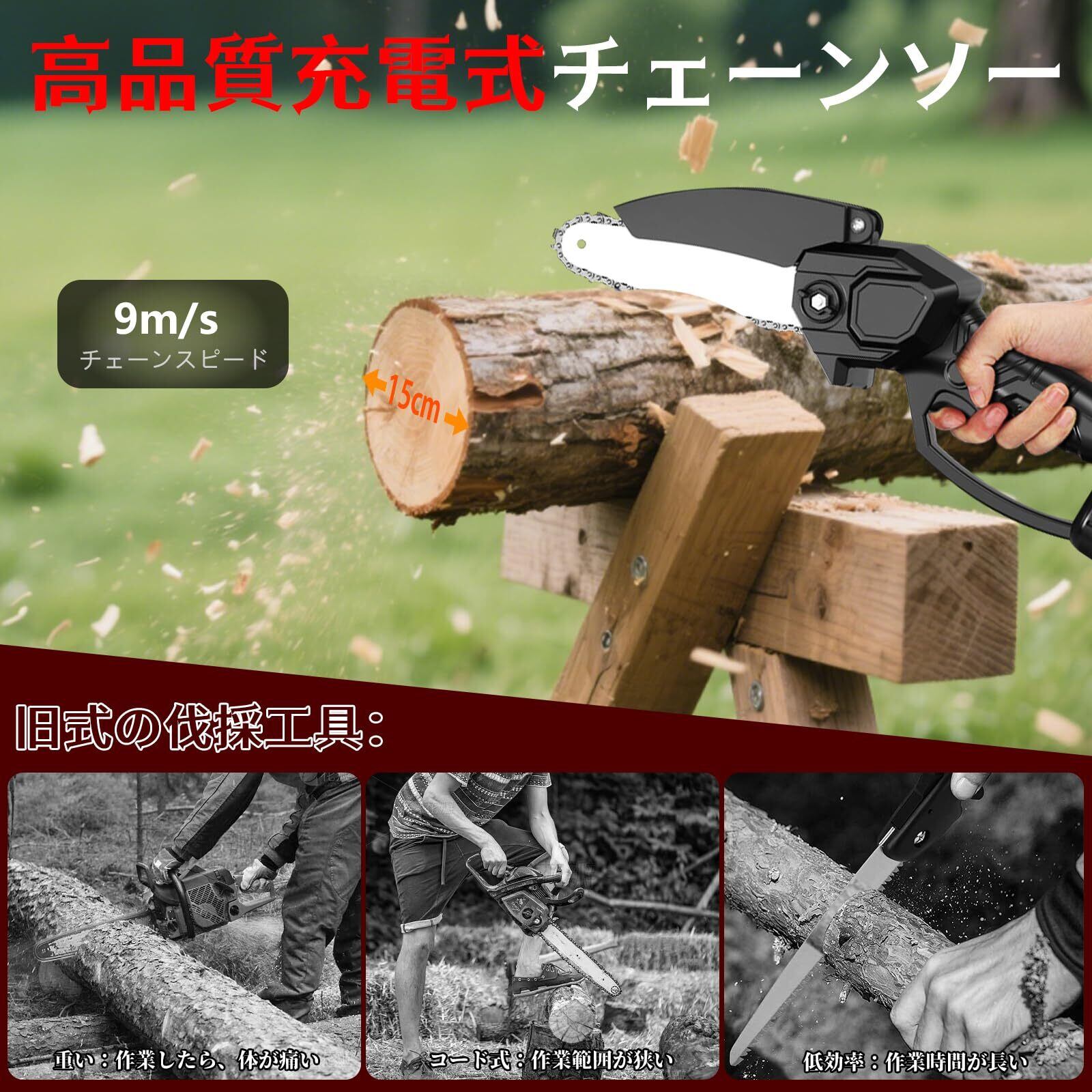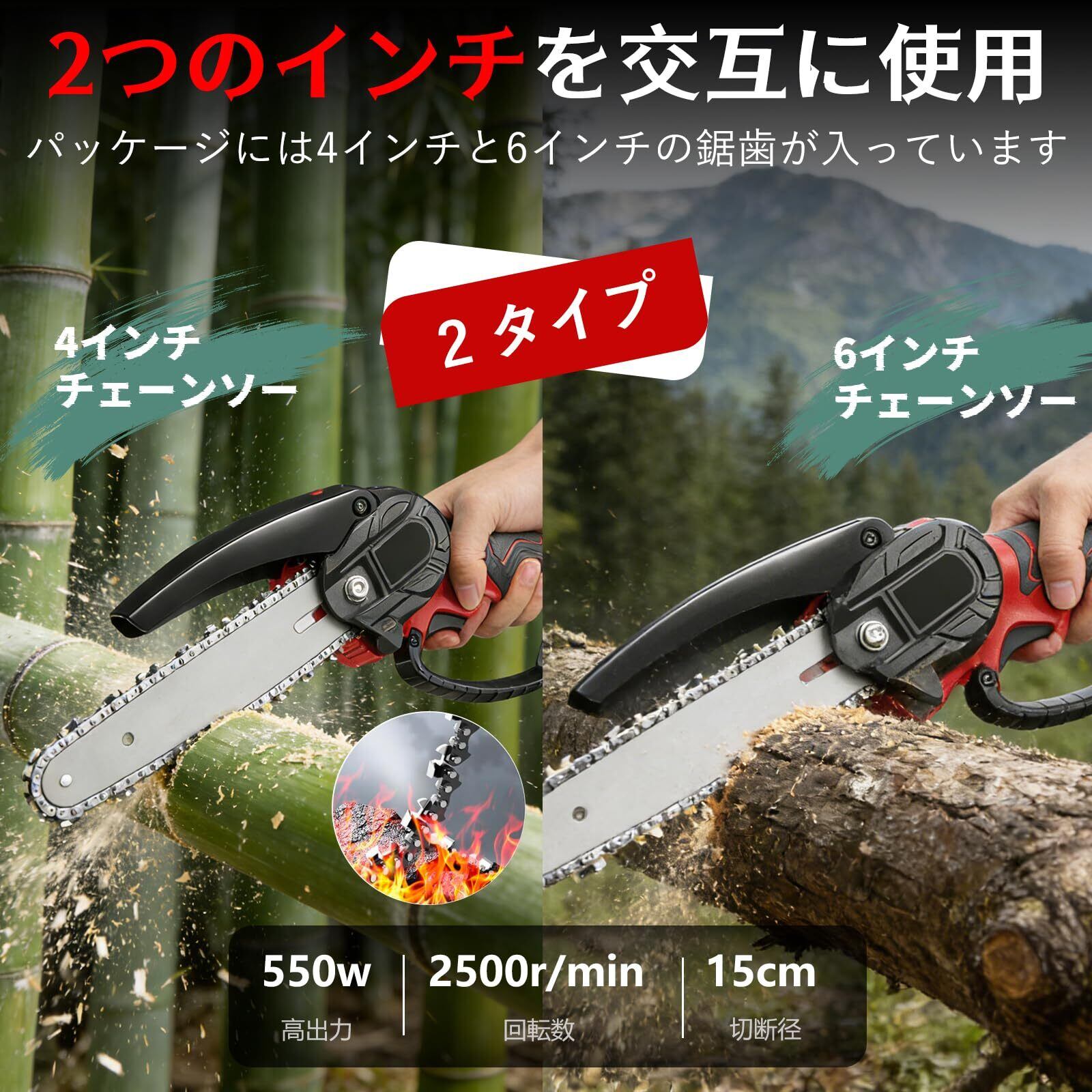 【新春セール】チェーンソー 充電式【造園会社監修·高効率ブラシレスモーター·2026新登場】チェーンソー 2個4.5Ahバッテリー 省エネ 電動式 1.1KG軽量 550W大出力 強力 ミニ 小型 ハンド式 安全ロック コードレス 切断径15cm 竹・枝切り・庭木の剪定・薪作り・林業伐採 手袋 ゴーグル 替えソーチェーン ケース付き 日本語説明書(Red)