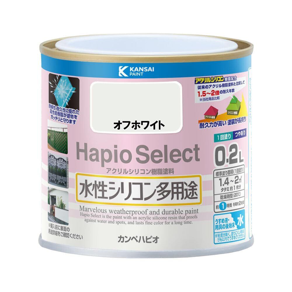 【人気商品】カンペハピオ ペンキ 塗料 水性 つやあり オフホワイト 0.2L 水性シリコン多用途 日本製 ハピオセレクト 00017650191002