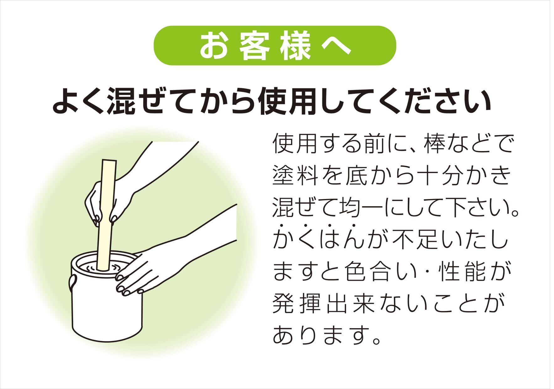 下処理方法:■塗る面の汚れやワックスを取り除き、油分はペイントうすめ液でふき取ります。■目の粗い木部はサンドペーパー(#240程度)を軽くあてておきます。■そのまま仕上げる事もできますが、保護の目的で用途に応じたニス(クリヤ)を上塗りしてください。