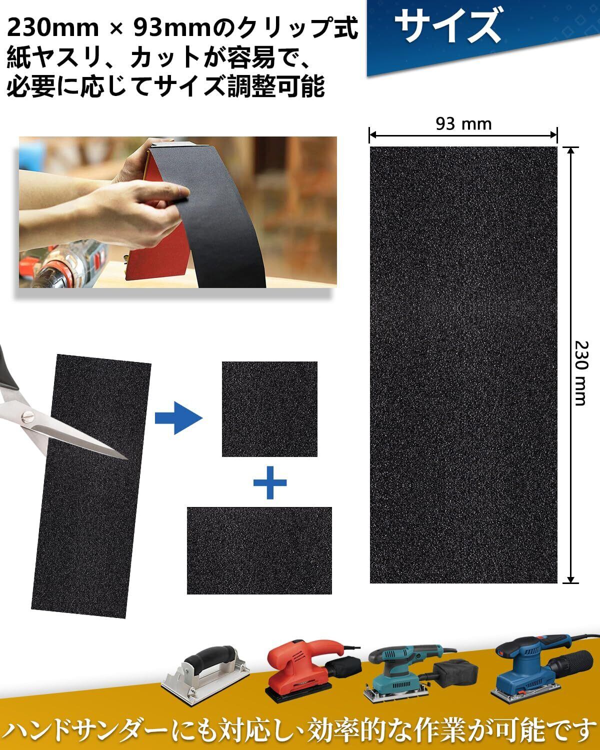 【使いやすい標準サイズ】 230mm × 93mmの標準サイズです。簡単にカット可能で、必要な大きさに調整でき、手動サンダー工具にも対応しているため、効率的な作業が行えます。