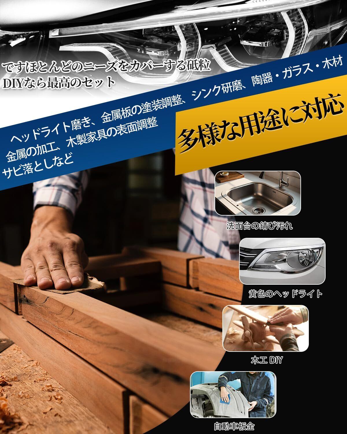 【多様な用途に対応】 ヘッドライト磨き、金属板の塗装調整、シンク研磨、陶器・ガラス・木材・金属の加工、木製家具の表面調整、サビ落としなど、さまざまなシーンでご利用いただけます。