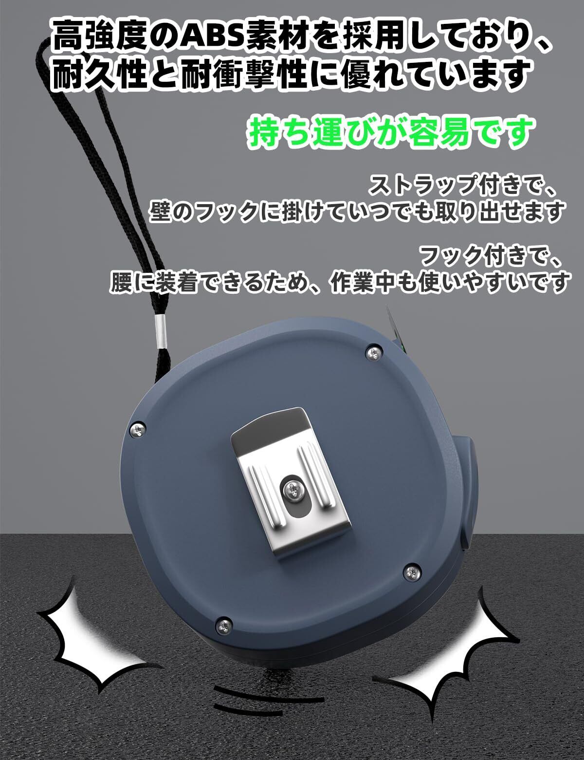 携帯性:直径約 7cm・重量約 160g のコンパクトデザインでありながら、5m まで測定可能です。工具袋や作業服のポケットに収納でき、移動の多い専門的な用途に非常に適しています。サイズ設計は女性でも操作しやすく、すべてのユーザーに利便性を提供します。