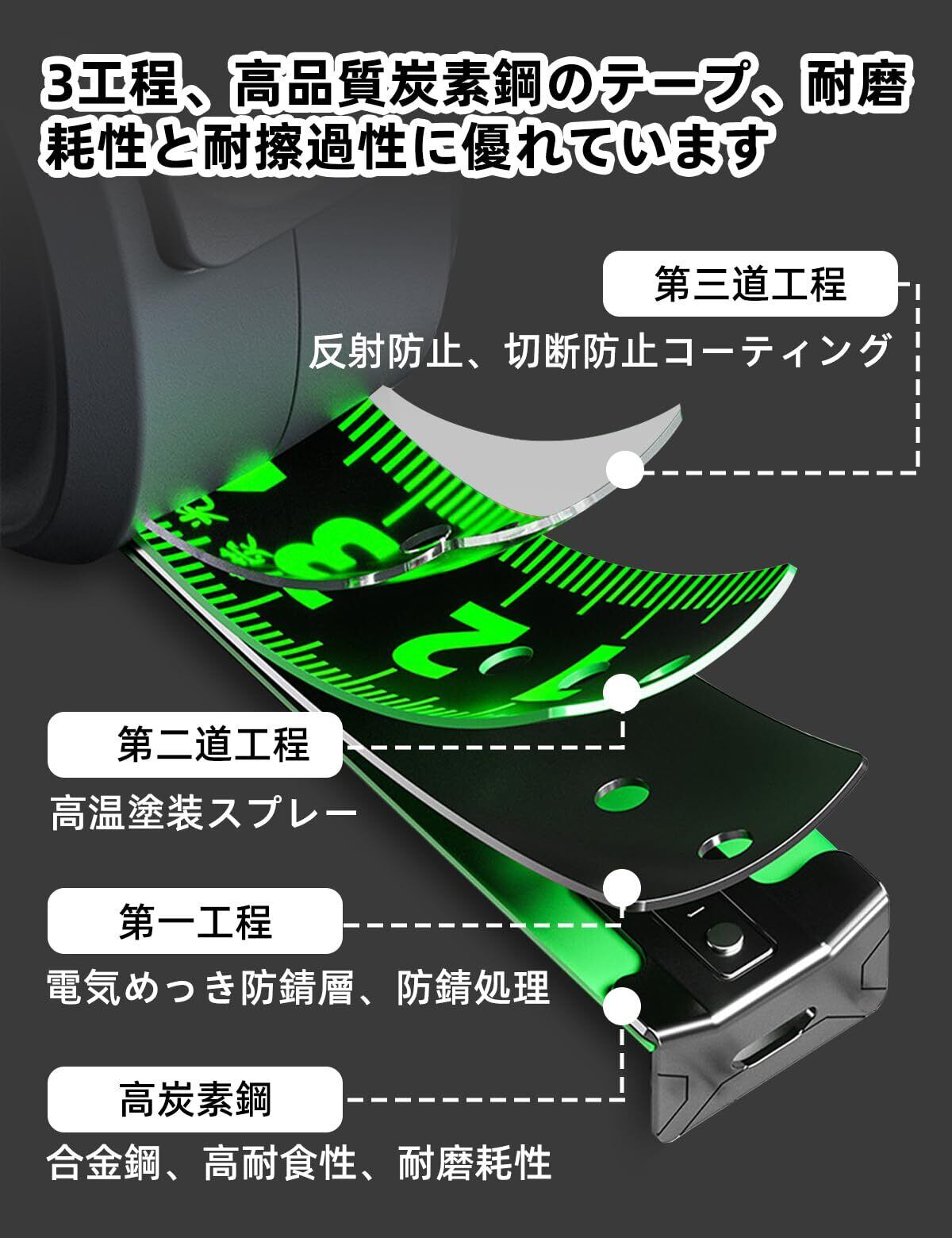 メジャー 5m メジャー 自動停止 安全設計 蛍光文字がよりはっきり 2メートルまで延長可能です 防水防錆手を切るのを防止 高炭素鋼を採用する 巻尺は鈍化処理が施されており、切り傷を防ぐことができます 室内家具の測定 測定工具 家庭用巻尺
