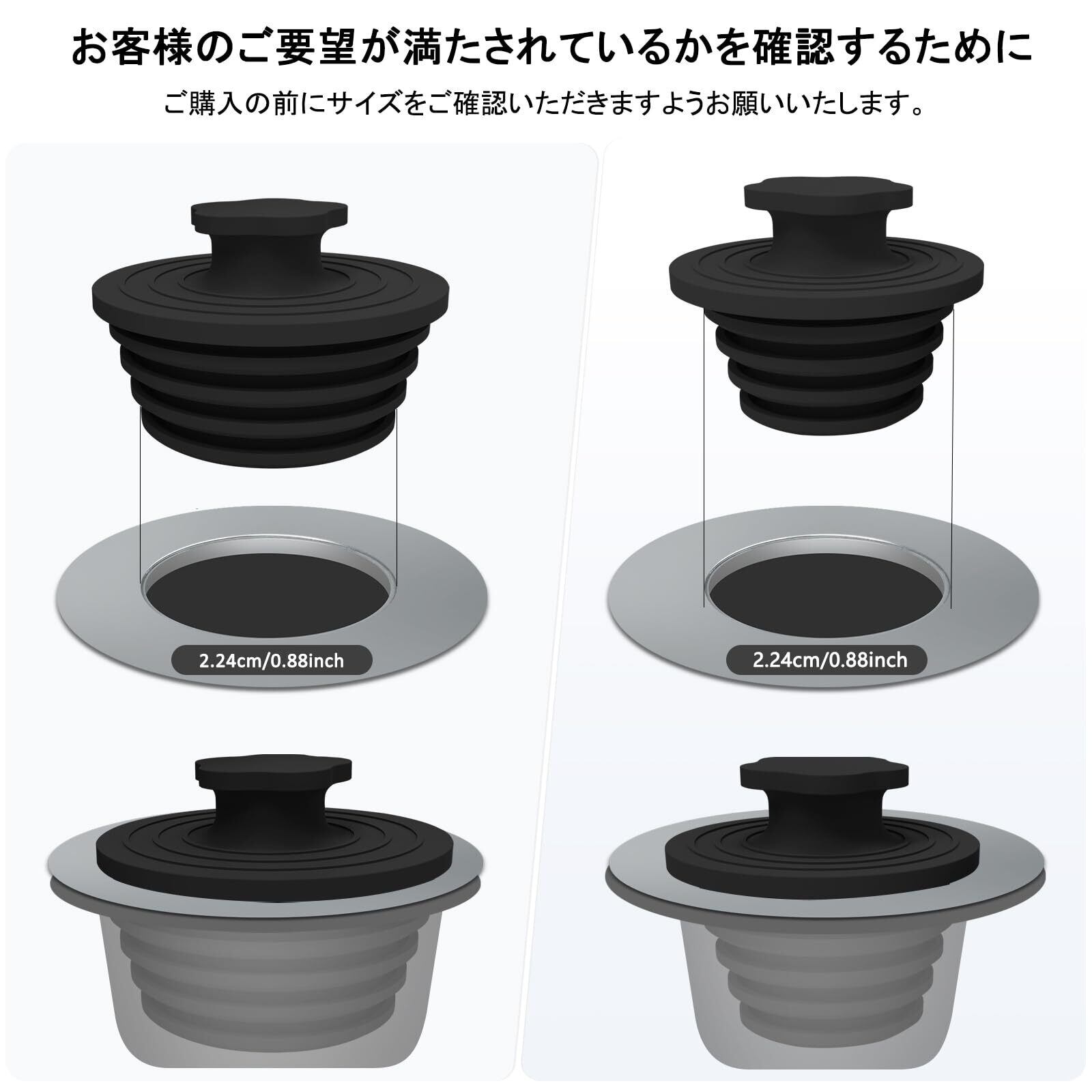 Osznmmg バス用 風呂栓 【2025新開発】2個セット ゴム栓 排水口 止水栓 洗面台 柔軟性 耐用性 お風呂の栓 排水口径25~55mm用 (黑)
