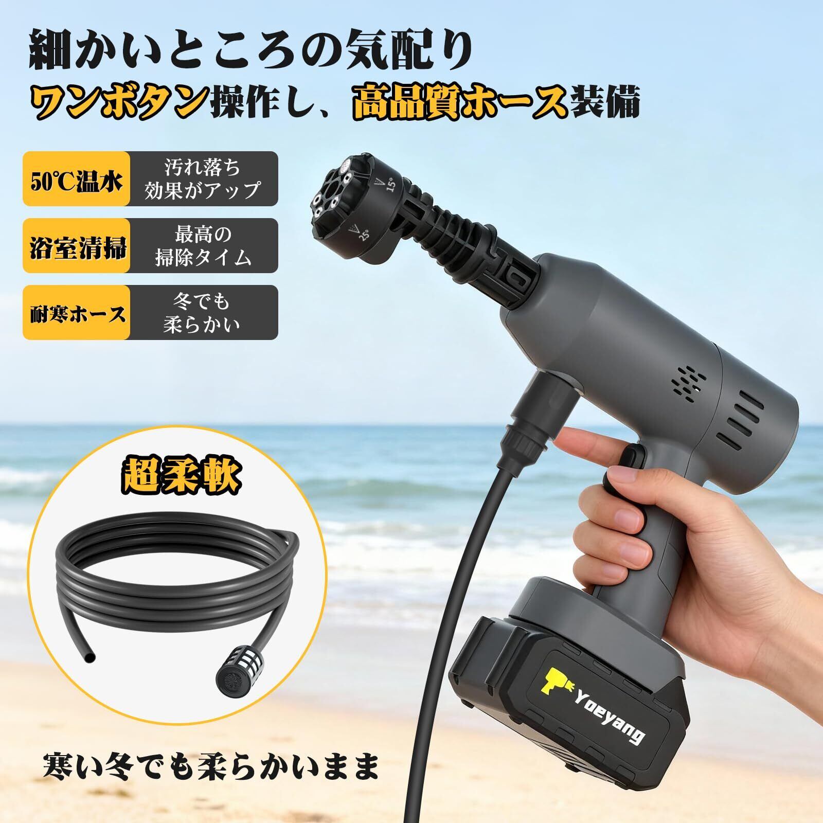 【Yoeyangサイシンモデル・8.5MPa高出力&業界最軽量560g】Yoeyangが革新を遂げてお届けするのは、この「パワー」と「軽さ」を両立した、かつてないミニ高圧洗浄機です。前スペックをご購入したお客様のご要望にお応えして、新たに強力な8.5MPaの高水圧と5L/minの出水量を実現した洗浄機登場。従来比洗浄力20%向上により、車のタイヤやボディにこびりついた泥、庭の柵、玄関周りの頑固な砂埃も、驚くほど簡単に吹き飛ばします。業界最小クラスの約20×7×18cm、わずか560gの超軽量ボディ。同等出力の他社モデルと比べて約50%も小型化したため、女性やご高齢の方でも疲れず、片手で楽々操作が可能です。高耐久ブラシレスモーター&高効率ポンプを組み合わせ、5L/minの出水量と高出力を長期にわたって安定供給、パワー不足を感じさせません。低騒音設計により、住宅街でも周囲を気にせず、思い立った時にすぐお使いいただけます。専用収納ボックス付きで、本体と付属品のまとめ収納が可能。玄関クローゼットや下駄箱、車のトランクなど、ちょっとした隙間にもすっきり収まり、アウトドアや洗車のお供にいつでもすぐお出かけできます。今回、色味も更新し、グレーカラーを追加いたしました。