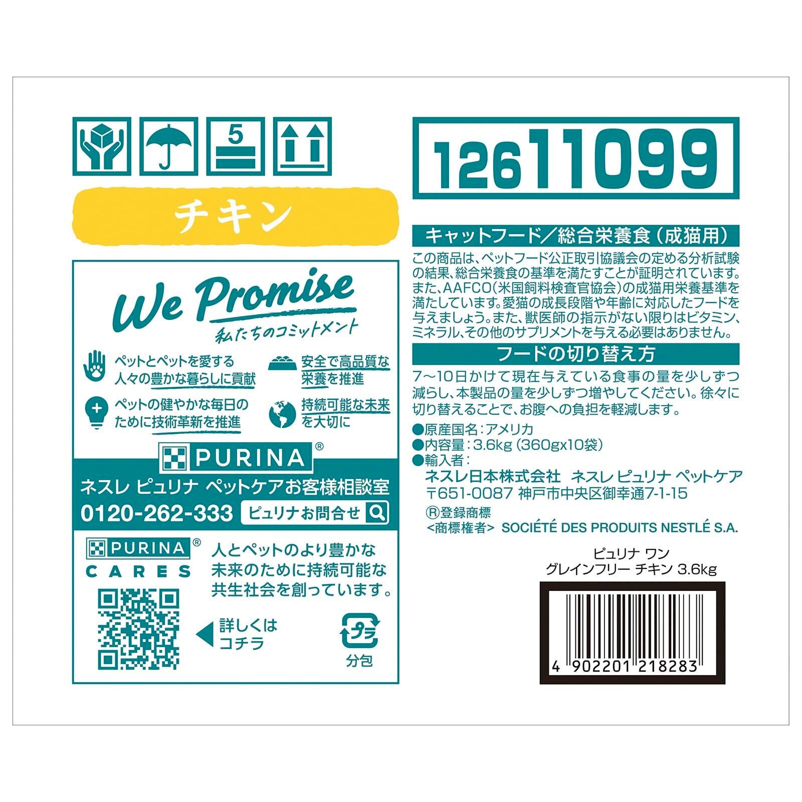 【在庫セール】ピュリナ ワン キャット ドライ グレインフリー1歳以上 チキン 3.6kg(360gx10袋入)