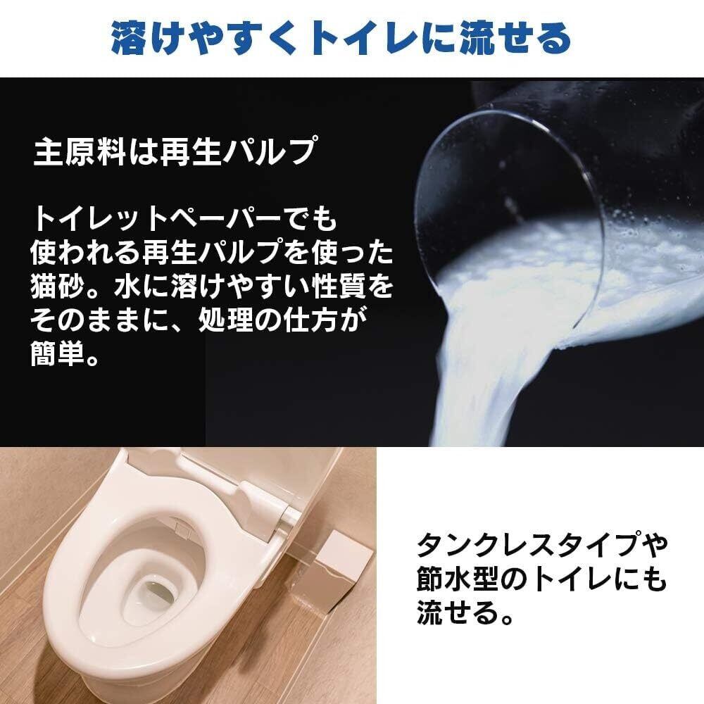 【毎日のトイレ掃除も簡単に!】アイリスオーヤマの猫砂は、猫の快適さを考えた特別なペーパー素材で作られています。木粉入りで固まりやすく、トイレに流せるため、処理がとても簡単です。愛猫のもとで安心してお使いいただけます。