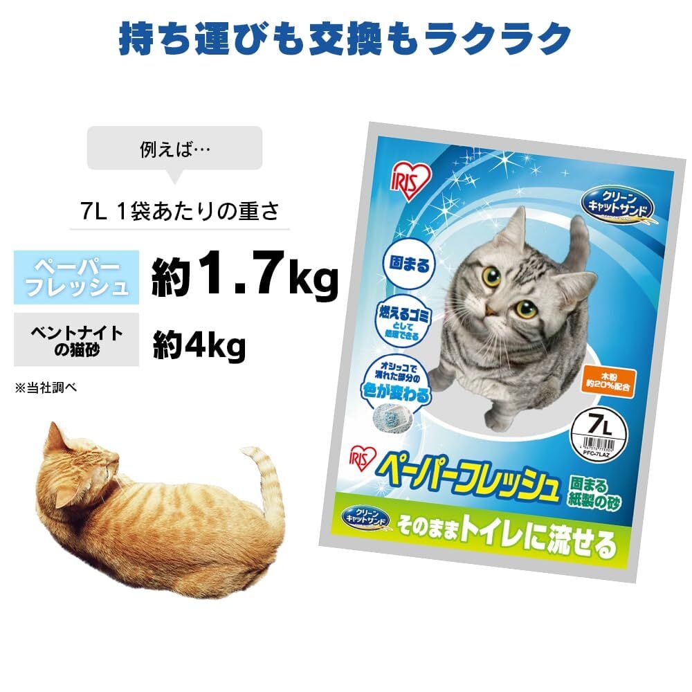 アイリスオーヤマ 猫砂 紙 ペーパーフレッシュ 木粉入り トイレに流せる 固まる 7L×6袋 ネコ砂 PFC-7LAZ