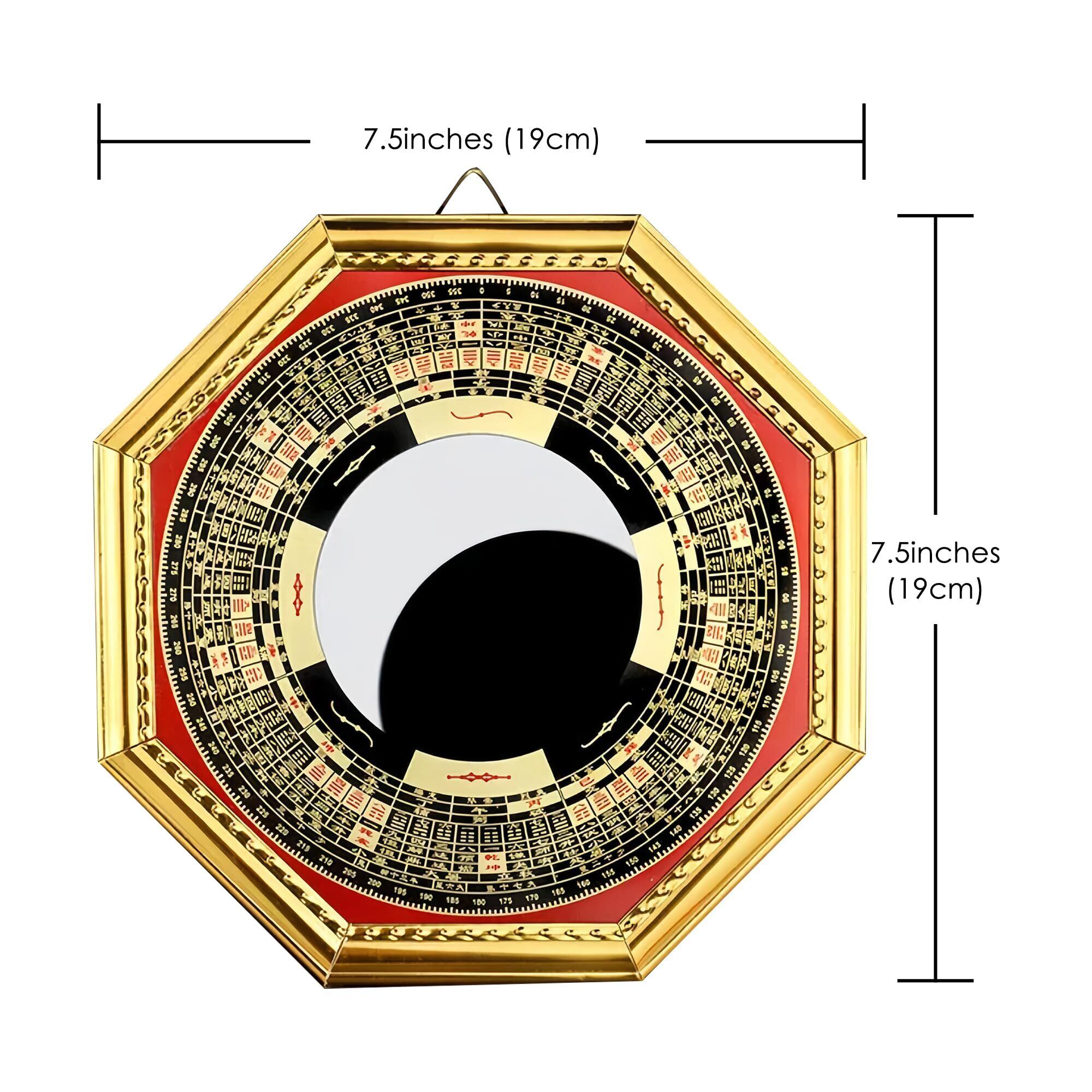 HannaFires 金色 八卦 凸面鏡 風水コンパス 家庭用伝統装飾品 中国伝統の幸運お守り 陰陽 太極 インテリア 風水 守護飾り 玄関 庭 祝い ギフト