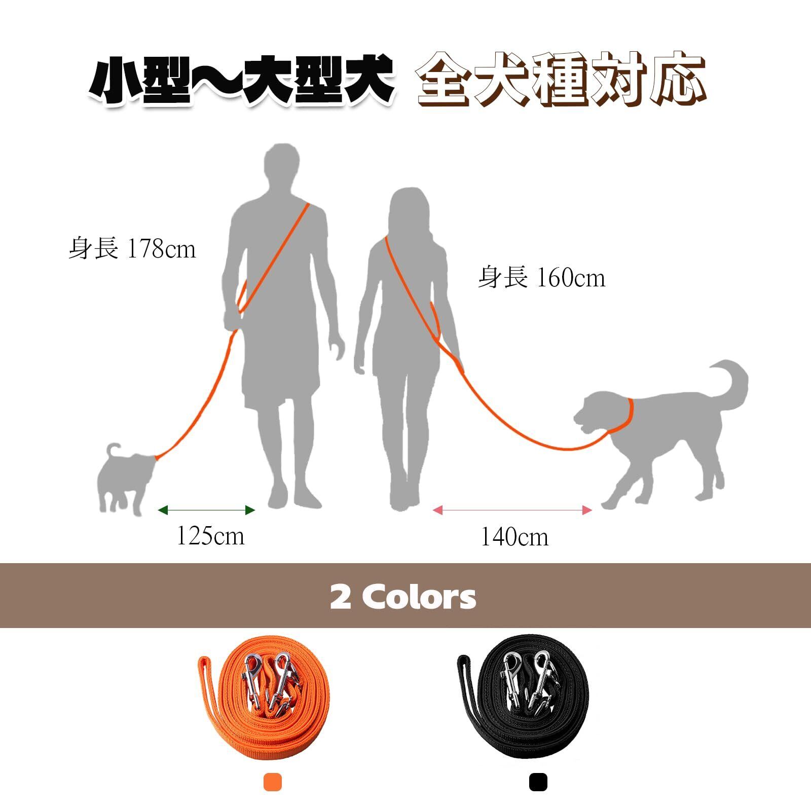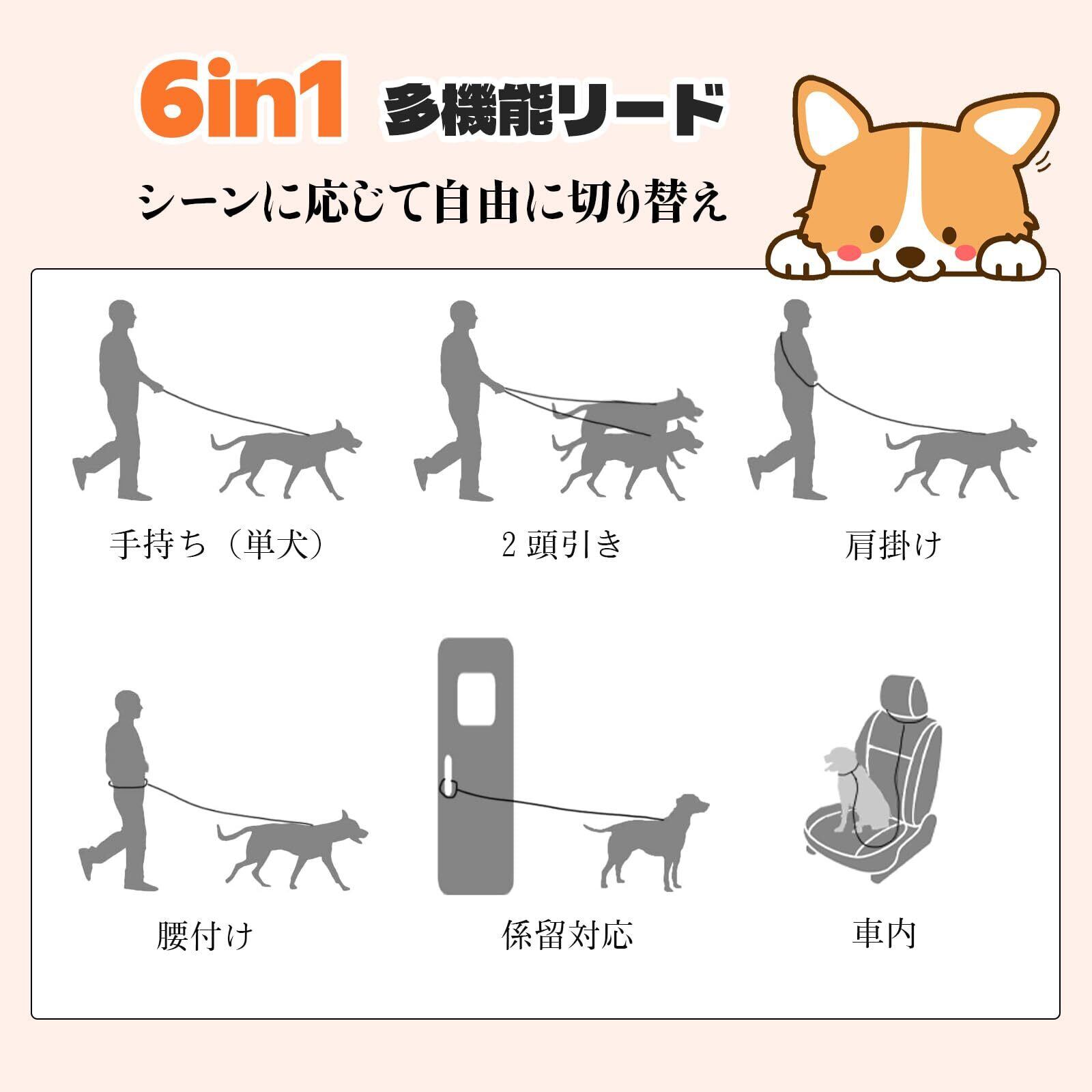 犬 リード 肩掛け ショルダーリード ハンズフリー 6in1 多機能 中型犬 大型犬 噛み防止 丈夫 耐荷重 2頭引き 訓練・散歩 アウトドア(3M)黒