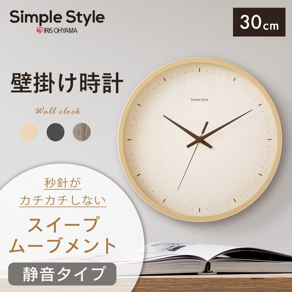 【新春セール】アイリスオーヤマ 時計 掛け時計 連続秒針で夜でも音が気にならない静音設計 インテリアにも馴染みやすいシンプルデザイン 直径30cm 非電波モデル AC01-30-T ブラウン
