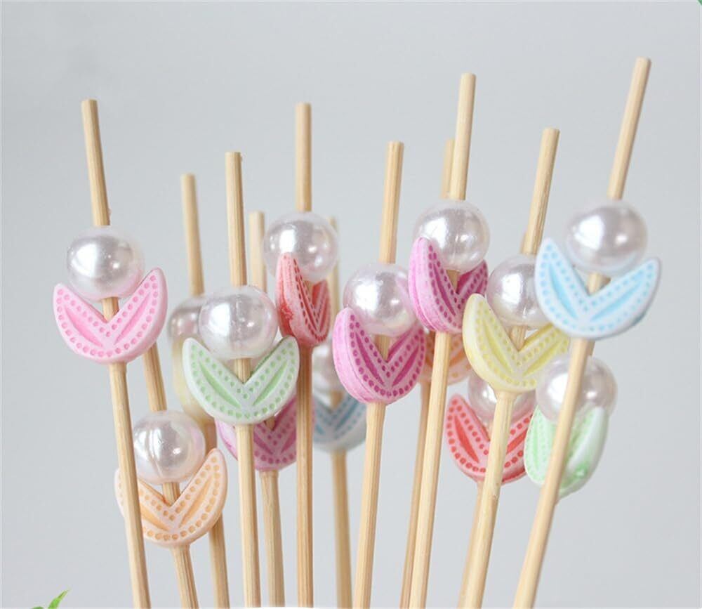 【数量限定】カクテルピック カクテルピン 200本 オードブルピン パール 花 フルーツピック つまようじ 前菜用 菓子 ピック 果物 飾り パーティー用 食品スティック 料理飾り