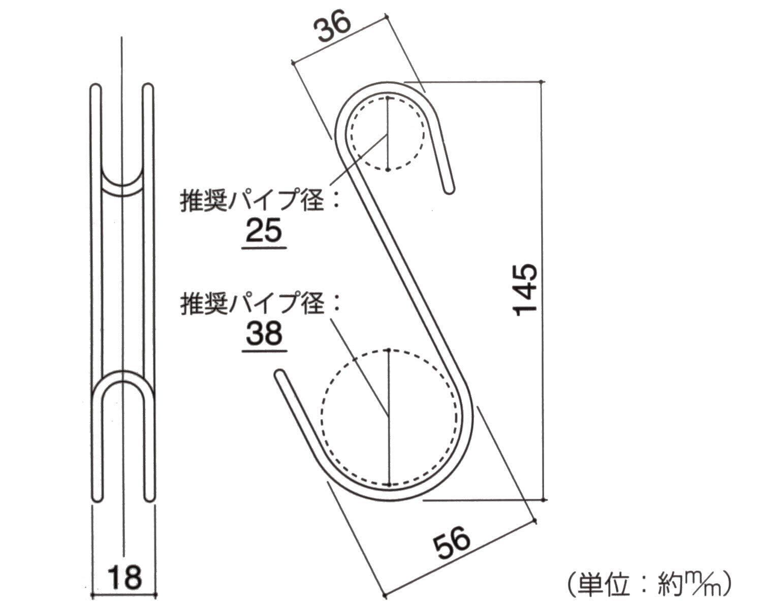 横ブレしづらいSカン●二本線の構造になっているため、一本線のS字フックよりパイプにかけたときに横にぶれづらくなっています