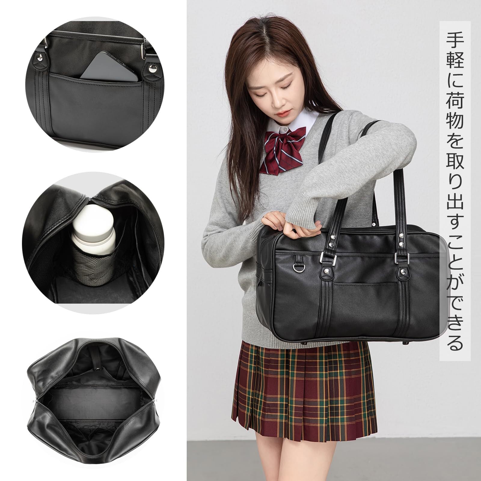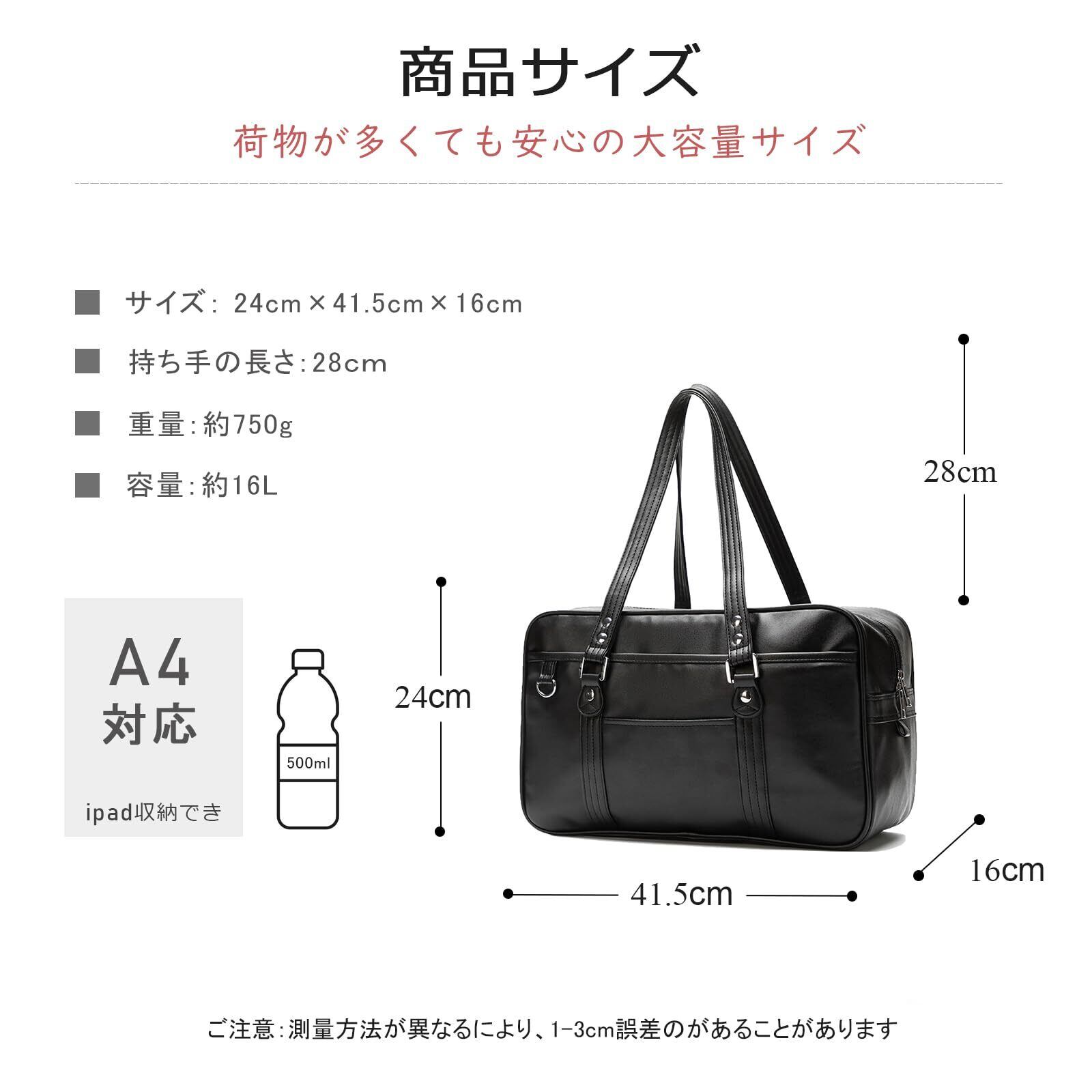 [jinghuiyue] スクールバッグ 高校生 女子 通学 人気 ボストンバッグ 合皮 大容量 軽量 男女兼用 黒 茶色 スクバ JJP0139-B