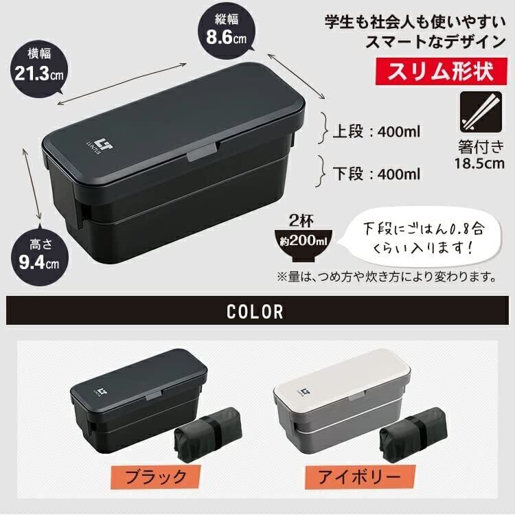 アスベル 弁当箱 ランタス WS-T800C 幅21.3cm×奥行8.6cm×高さ9.4cm バッグ付 ブラック