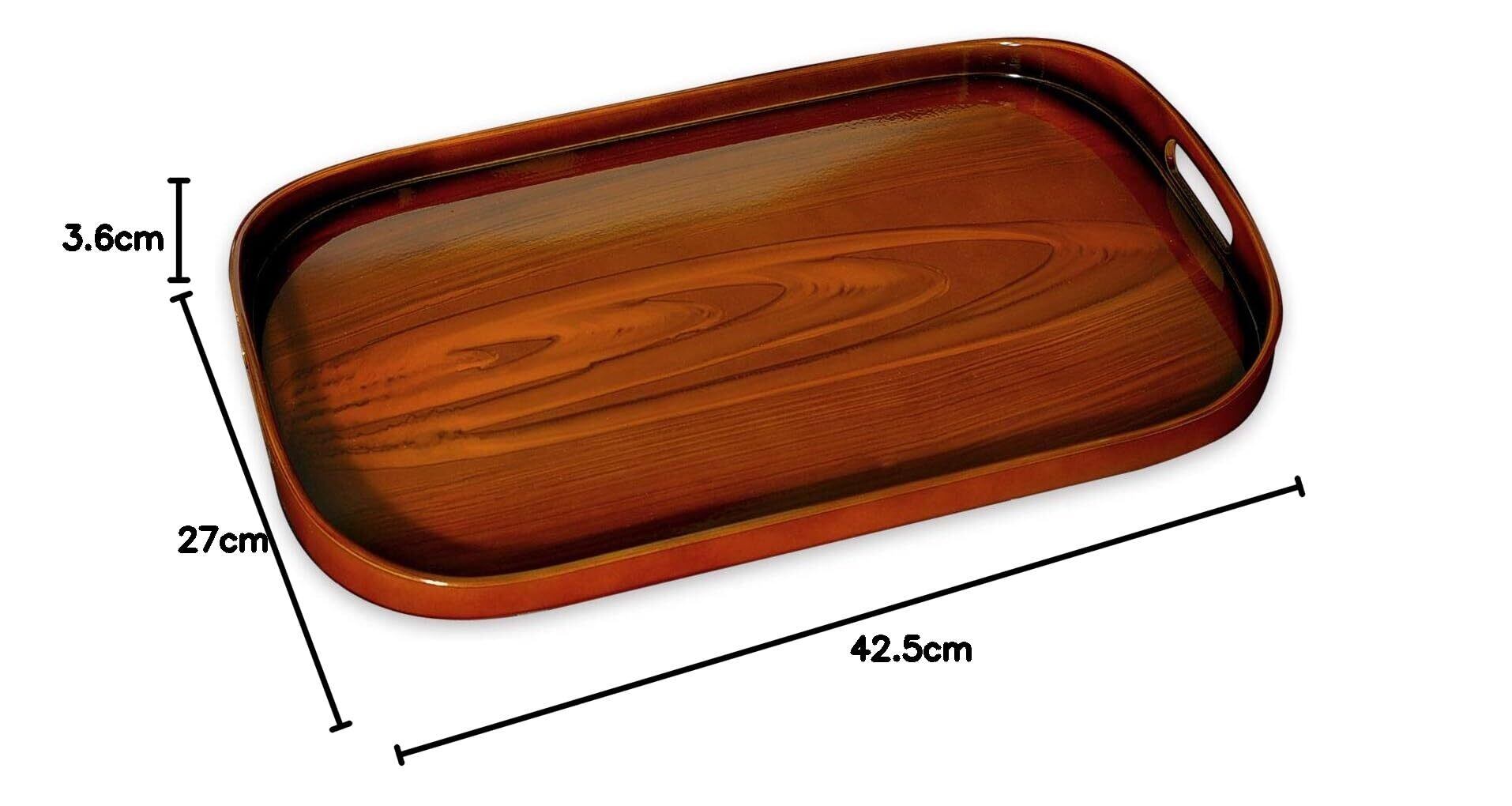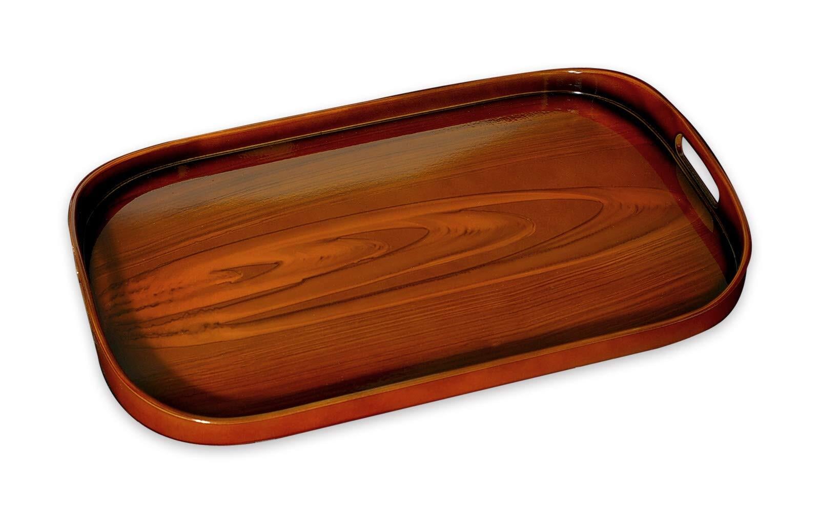 TATSU-CRAFT(タツクラフト) 木目塗り 盆 42cm すべり止め付 茶 木目 チーク お盆 トレー おしゃれ 滑り止め 滑らない プラスチック 大 小 大きい 配膳 トレイ インテリア 業務用 ホテル カフェ 料亭 旅館 日本製