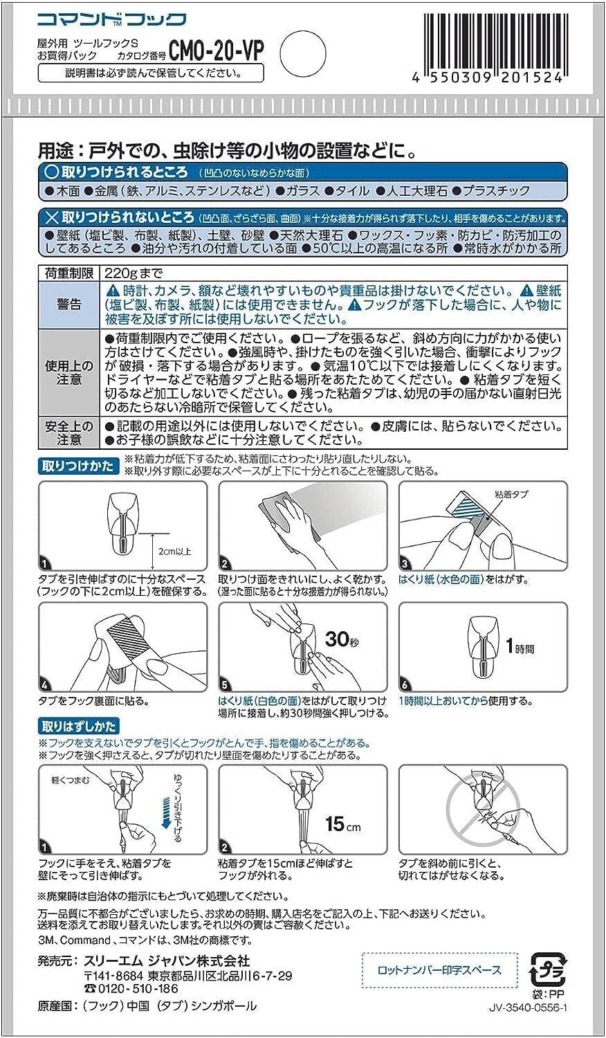 3M コマンド フック キレイにはがせる 屋外用 すだれ 壁 Sサイズ 10個 大容量パック CMO-20-VP