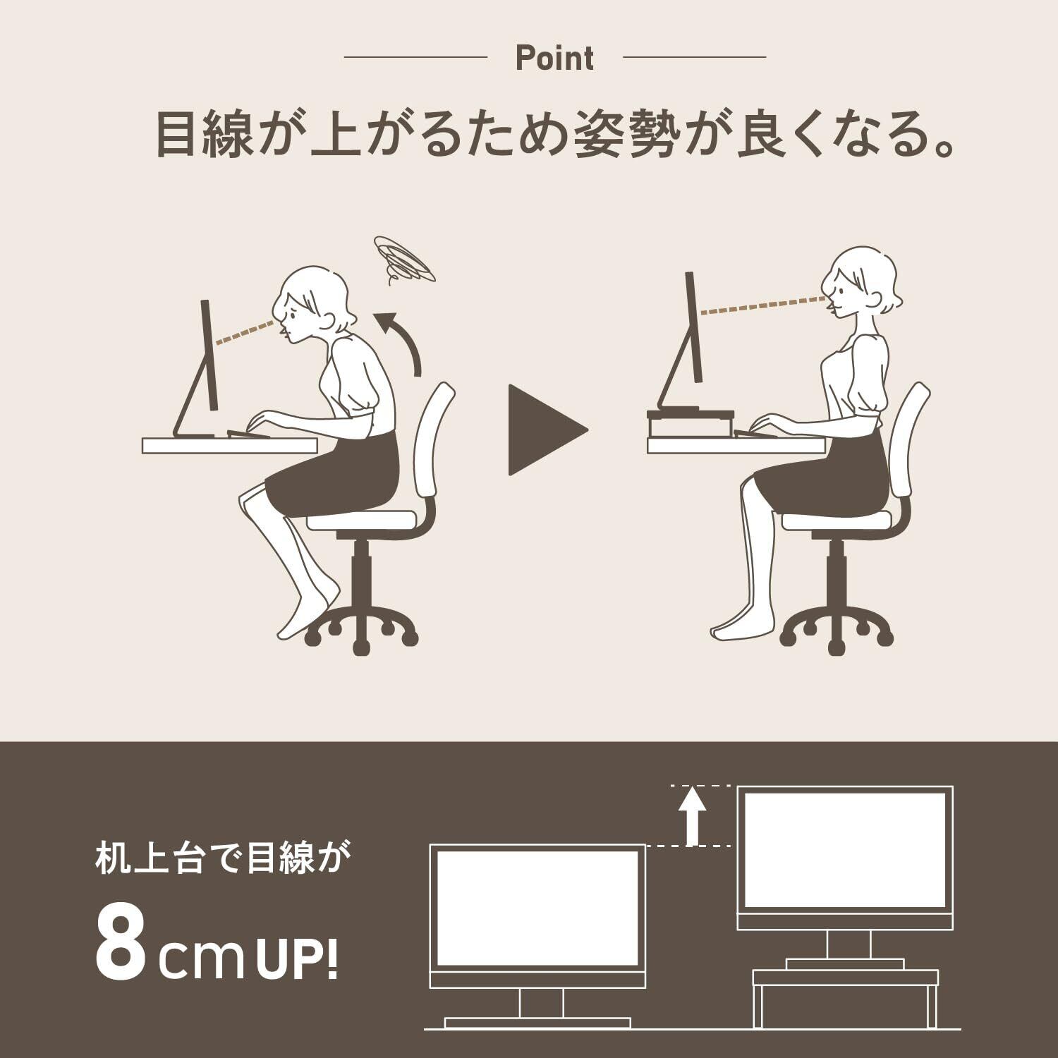 【在庫処分】リヒトラブ パソコン台 モニター台 木目調 MDF 机上台 スリム ナチュラル 幅34×奥行20×高さ8cm ロータイプ 耐荷重15kg A8004-35
