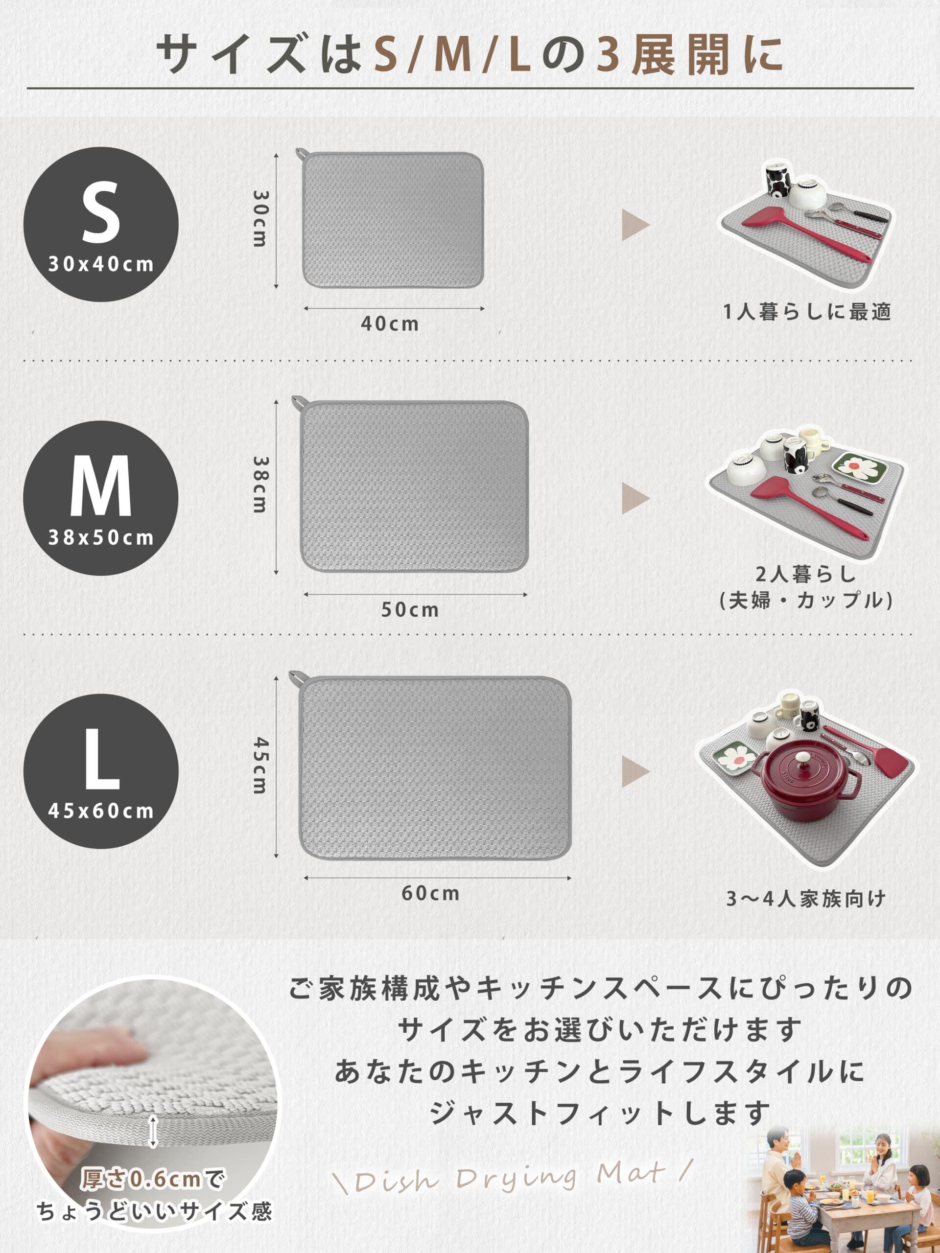 水切りマット 抗菌 速乾 吸水 食器 乾燥 防臭 水切り マット 【全4色・3サイズ展開】 キッチン シンク 台所 上 ラック 棚シート 洗い物 衛生 北欧 丸めて 吊り下げ 簡単 収納 ループ付き 洗える 大判 マイクロファイバー 毛羽立たない kitchen mat (TYPE01, M 38×50cm (2枚入))