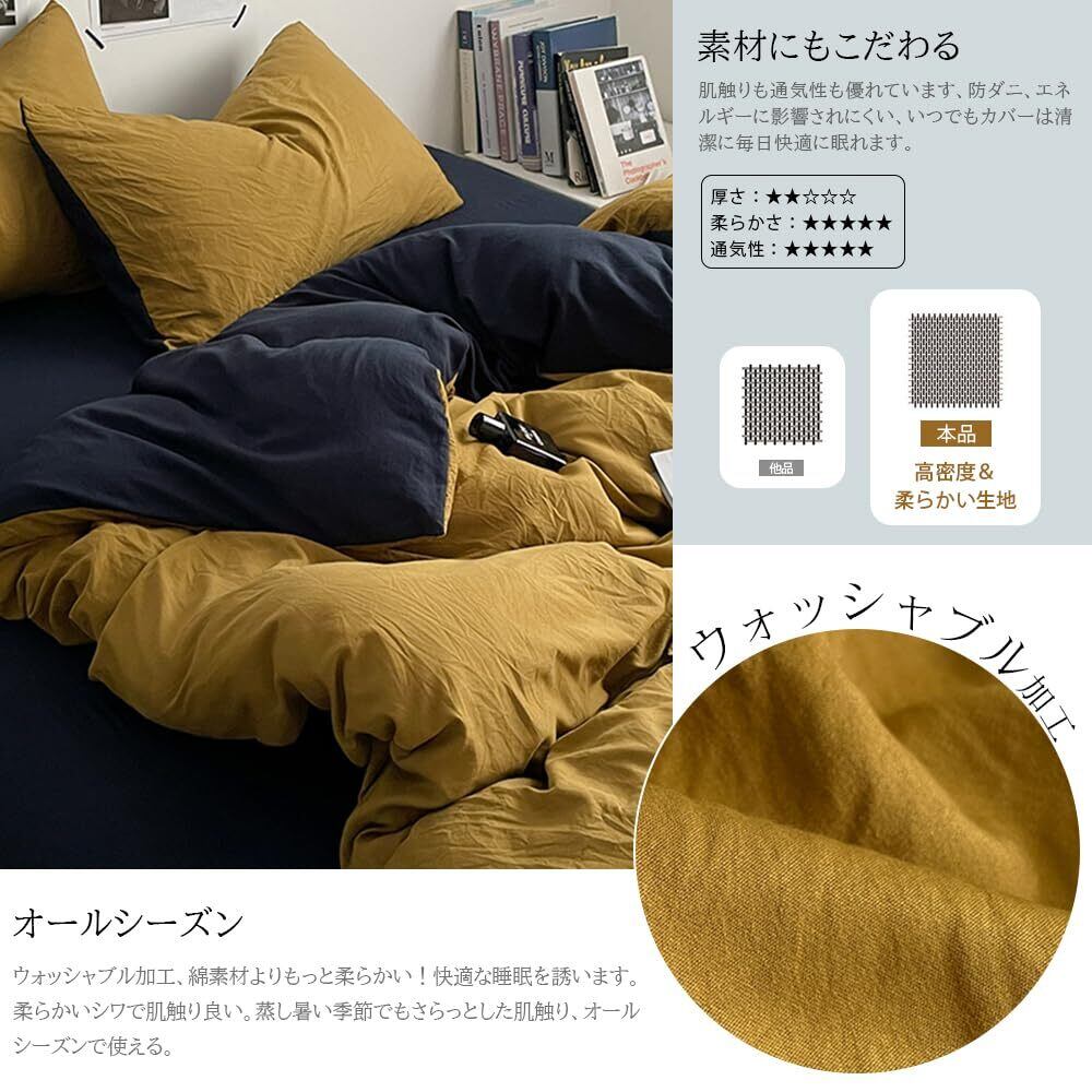 【人気商品】布団カバー 掛け布団カバー シングル 3点セットboxシーツ ふとんカバー 寝具カバーセットボックスシーツ ベッド用 敷き布団用 肌に優しい 丸洗い 引っ越し新居 (マスタードネイビー, シングル3点セット)