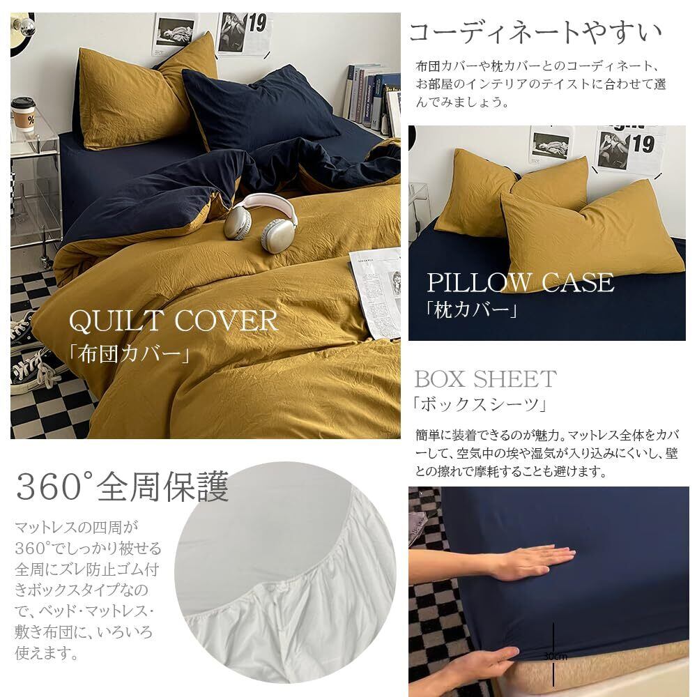 布団カバー 掛け布団カバー シングル 3点セットboxシーツ ふとんカバー 寝具カバーセットボックスシーツ ベッド用 敷き布団用 肌に優しい 丸洗い 引っ越し新居 (マスタードネイビー, シングル3点セット)