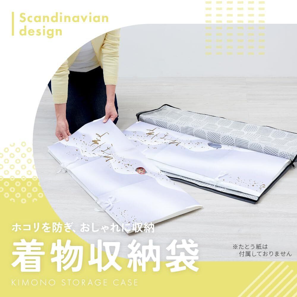アイメディア(Aimedia) 着物収納ケース 着物収納袋 衣類収納 収納袋 着物 浴衣 衣類 収納 透明窓付き 北欧柄 不織布 防塵 通気性 押入れ クローゼット おしゃれ