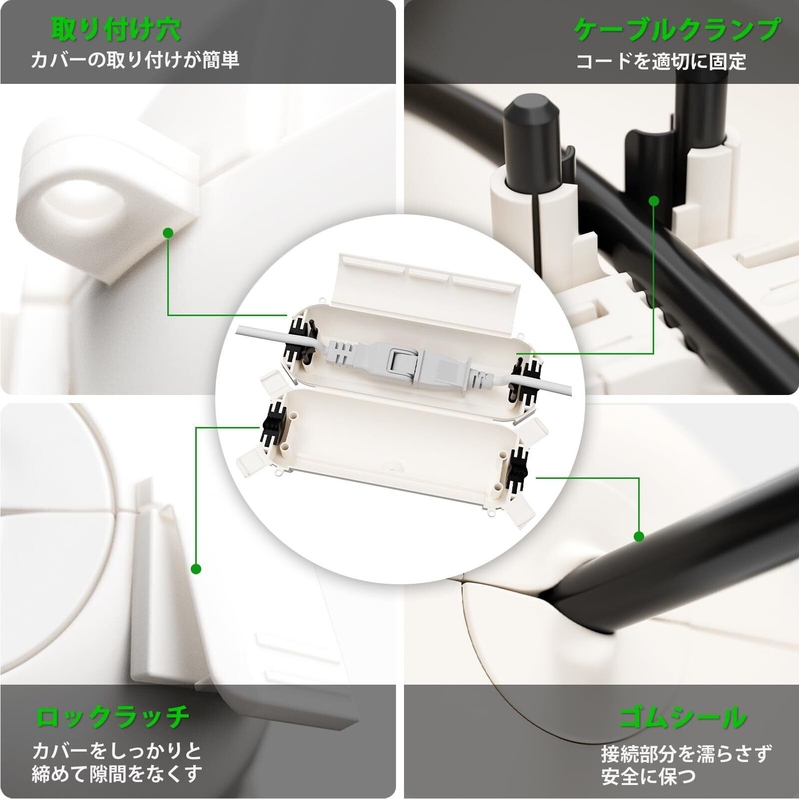 使いやすい: インストール不要、トップカバーと4つのラッチで簡単に開けられ、中に接続部を入れ、ケーブルクリップでコードを固定し、ロックして密閉します。